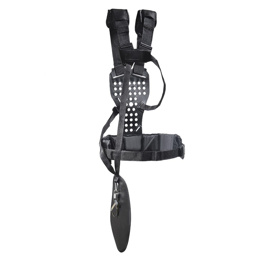 Суцільний металевий вал діаметром 10 мм мінімізує вібрацію та забезпечує надійну передачу потужності від двигуна до ріжучого інструменту. Ортопедичний ремінь на два плеча рівномірно розподіляє вагу 7,6 кг, що знижує навантаження на спину та плечі під час тривалої роботи.