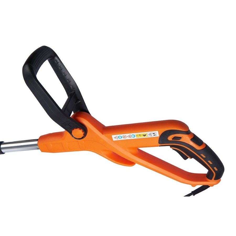 Тример SEQUOIA SET550DTW працює від мережі та розрахований на скошування трави середньої жорсткості на ділянках до 8–10 соток. Телескопічна штанга дає змогу змінювати довжину інструменту, що зручно для людей різного зросту та при роботі в різних позах. Додаткова рукоятка з регулюванням кута повороту полегшує обробку похилих ділянок, країв клумб та зон під кущами. Потужність 550 Вт забезпечує стабільну роботу з жилкою 1,6 мм при ширині захвату 30 см. Антивібраційна система та нижнє розміщення двигуна суттєво знижують вібрацію, що передається на руки. Вага 2,75 кг залишається прийнятною для тривалої роботи без швидкої втоми.