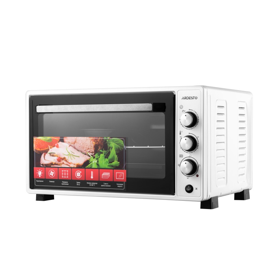 ARDESTO MEO-N48CW надає ще більше можливостей для створення кулінарних шедеврів завдяки функції конвекції, що забезпечує рівномірний розподіл тепла всередині, нагрівальні елементи – хромовані. У комплекті надається прямокутне й кругле дека, решітка для гриля.