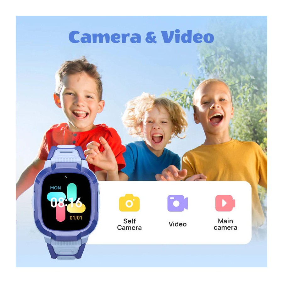 Годинник підтримує повноцінні відеодзвінки та голосовий зв’язок через Nano-SIM-карту. Камера 2 МП фіксує моментальні знімки та короткі відео з перспективи дитини. Акселерометр реєструє рухи, що допомагає відстежувати рівень активності протягом дня.