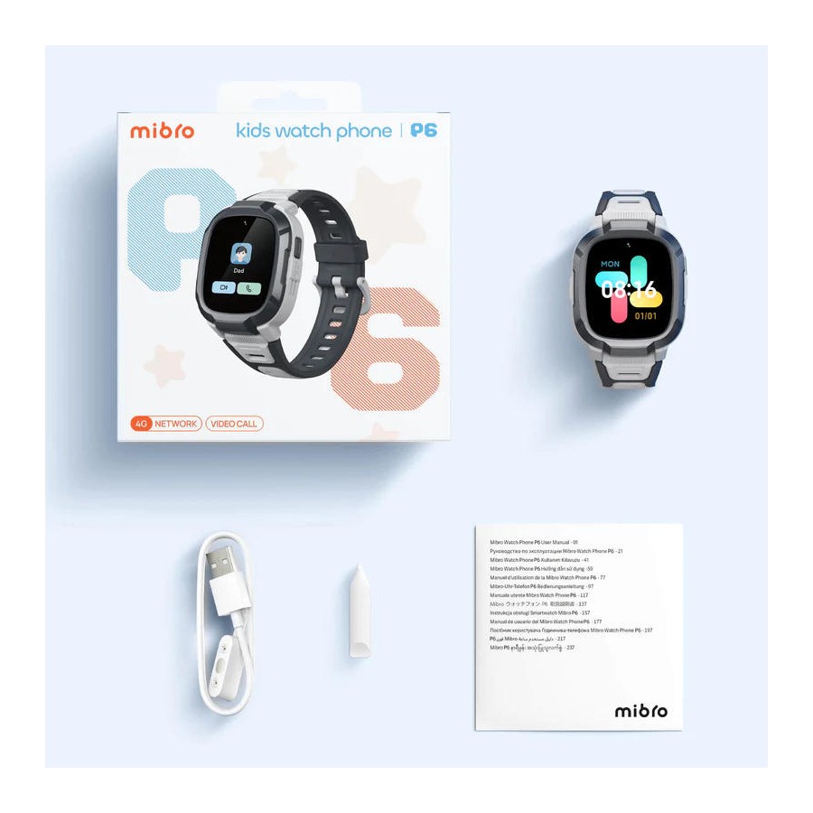Mibro P6 у сірому кольорі пропонує нейтральний та практичний варіант для дитячих годинників-телефонів з акцентом на безпеку, зв’язок та автономність. Пристрій поєднує необхідні функції в компактному корпусі, залишаючись зручним для щоденного використання без зайвих елементів.
