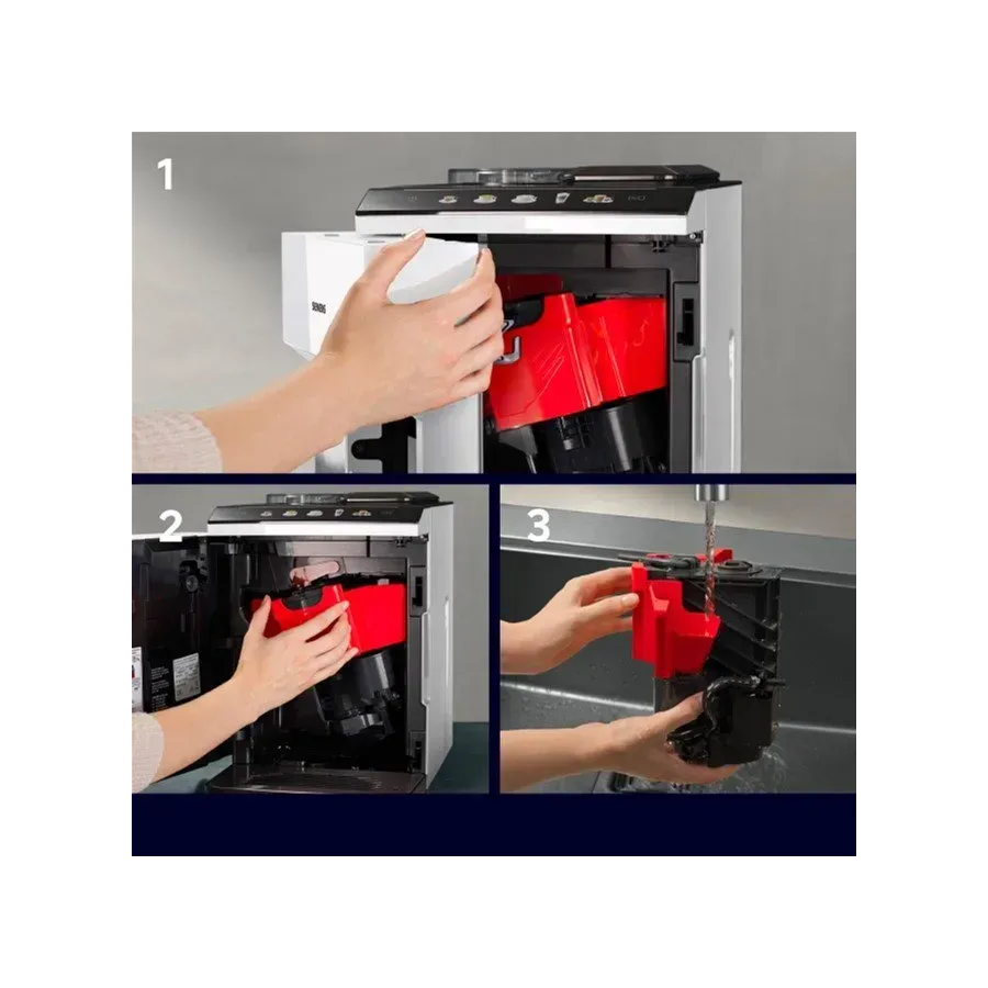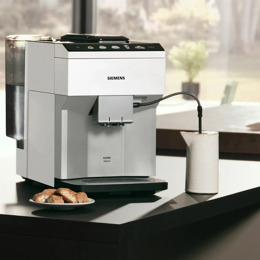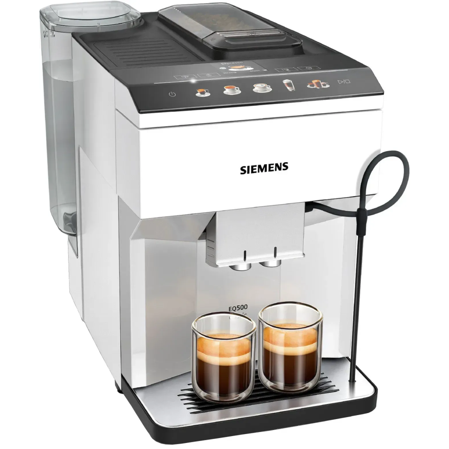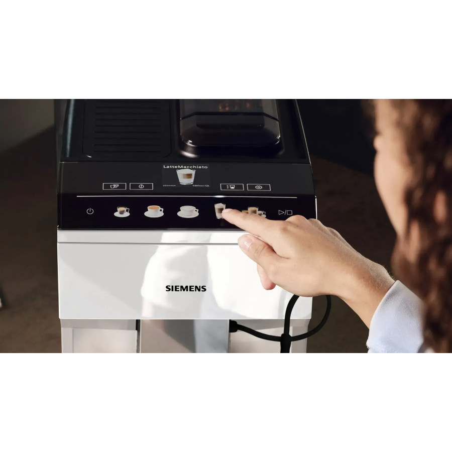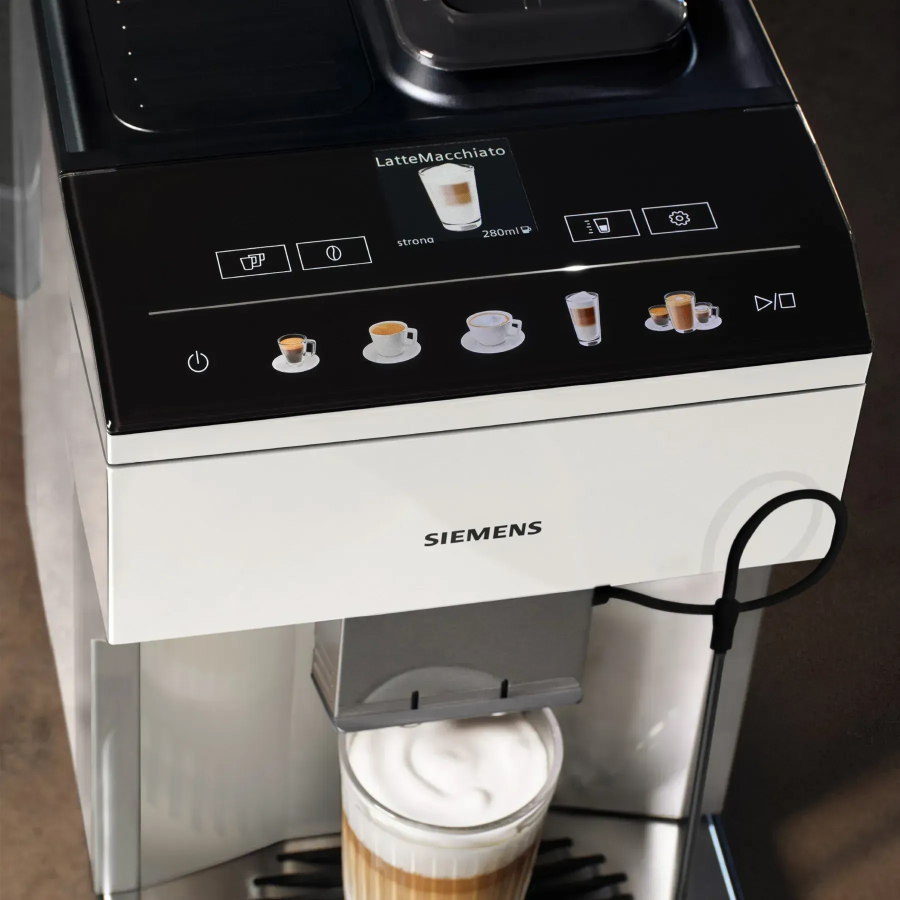 Кавомашина Siemens TP515R02 — автоматичний пристрій для приготування різноманітних кавових напоїв у домашніх умовах. Модель підтримує роботу із зерновою та меленою кавою, оснащена керамічним млинком ceramDrive та водяним насосом з тиском 15 бар. Кольоровий дисплей coffeeSelect Display забезпечує зручний вибір напоїв і налаштування параметрів. Автоматичний капучинатор і система OneTouch підтримують приготування кавових та молочних напоїв одним натисканням кнопки. Функції автоматичного очищення та знімний заварювальний блок сприяють простому догляду за пристроєм.