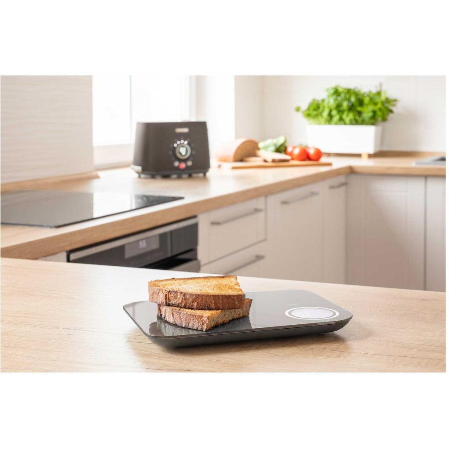 Кухонні ваги Sencor SKS7178BK — розумний кухонний прилад зі скляною платформою, Bluetooth-з'єднанням та застосунком Sencor FOOD для тих, хто стежить за харчуванням і цінує точність під час приготування. Чорний пластиковий корпус з преміального лінійки металевих кухонних приладів Sencor органічно вписується в сучасну кухню.