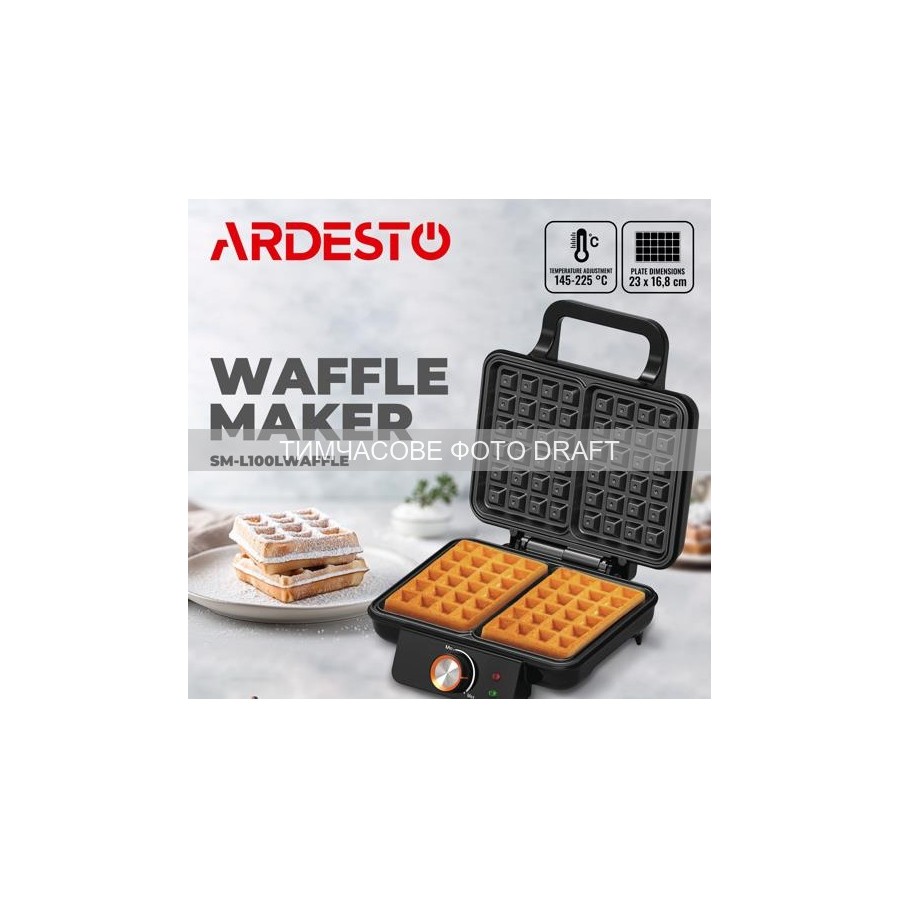 ARDESTO SM-L100LWAFFLE вирізняється лаконічним чорним дизайном і продуманими деталями, поєднуючи функціональність та естетику. Завдяки компактному розміру 23,6 × 25,5 × 9,7 см для зберігання пристрою знайдеться місце навіть у невеликій кухні.