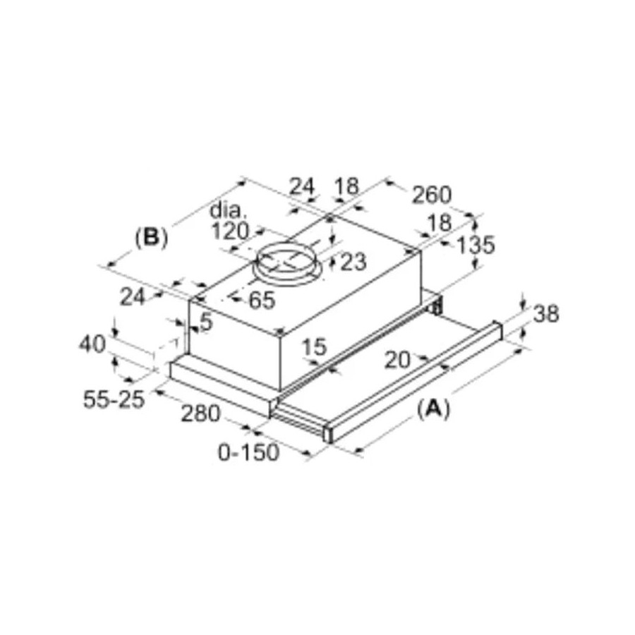 Bosch DFT63CA51T Serie 2 — практична телескопічна витяжка шириною 60 см, яка ідеально вбудовується в кухонну шафу та ефективно очищає повітря на невеликих і середніх кухнях.