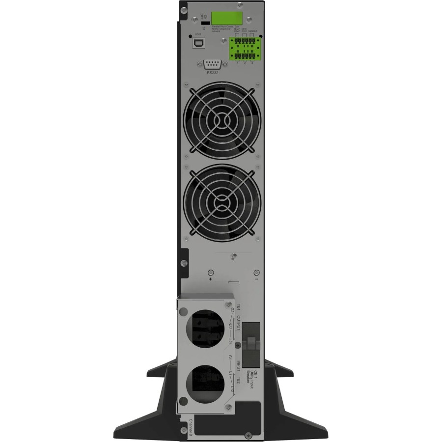 - Інтерфейси: USB, RS232, слот SNMP, EPO