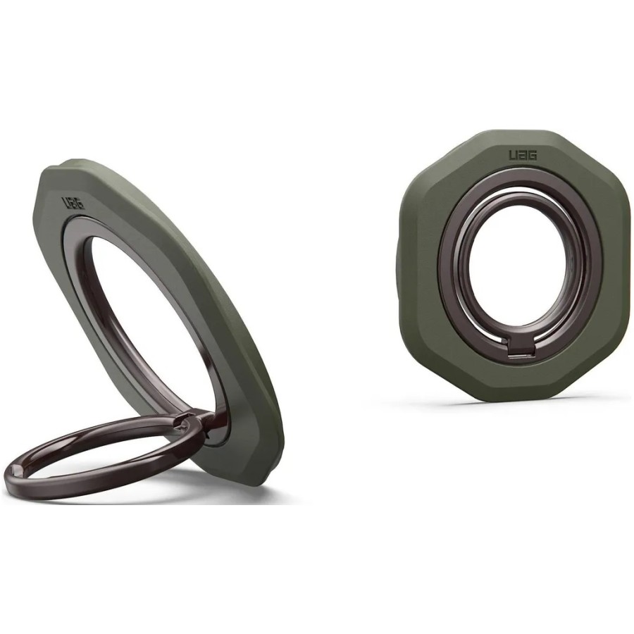 UAG Magnetic Ring Stand LT — магнітне кільце-тримач з підтримкою MagSafe, що виконує функцію підставки та надійного утримання. Виготовлене з міцного пластику та металу з нековзним покриттям. Має тонкий профіль і колір Olive. Підходить для щоденного використання з пристроями MagSafe.