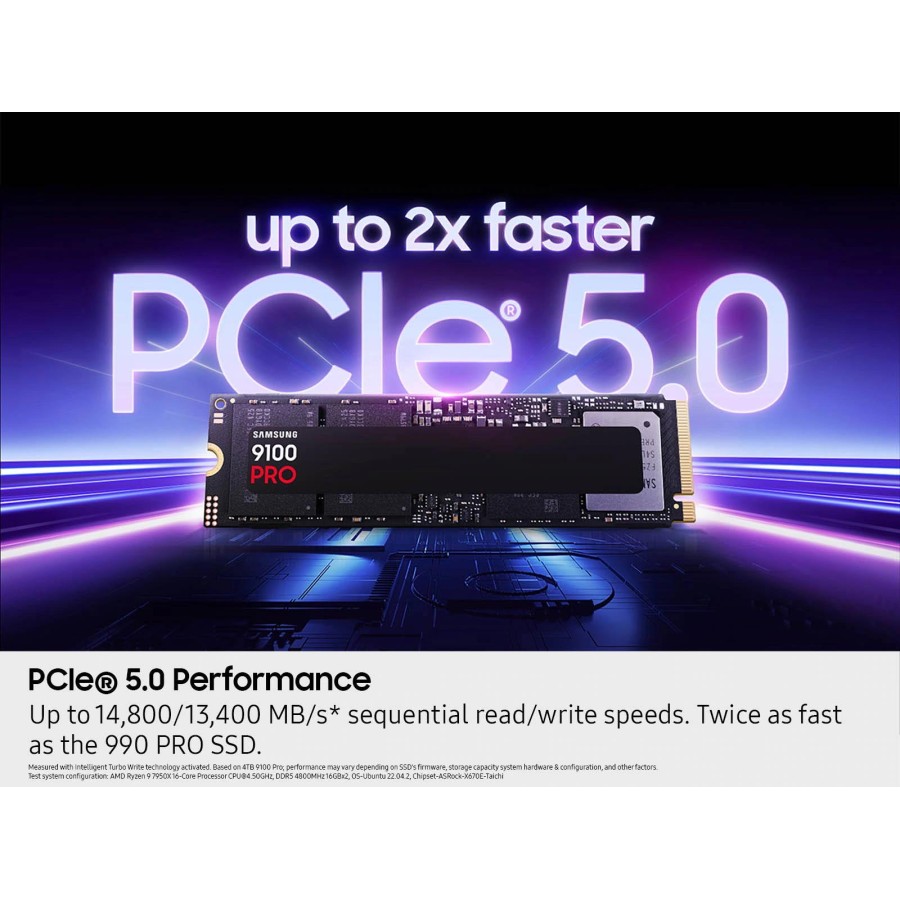Samsung M.2 9100PRO є передовим накопичувачем, що встановлює нові стандарти продуктивності завдяки інтерфейсу PCIe 5.0. Велика ємність, виняткові швидкісні характеристики роблять його ідеальним вибором для найвимогливіших сценаріїв використання.