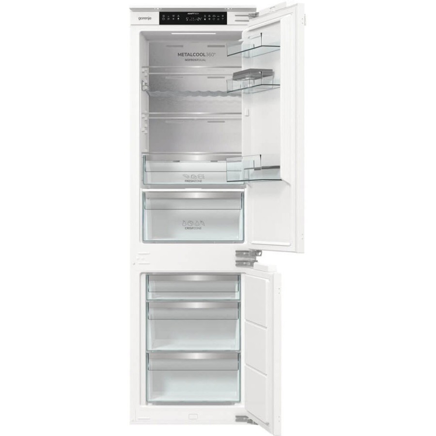 Gorenje NRKI517E82WF поєднує інтегровану конструкцію, адаптивне охолодження та гнучку організацію внутрішнього простору. Модель орієнтована на стабільне зберігання продуктів і раціональне використання енергії.