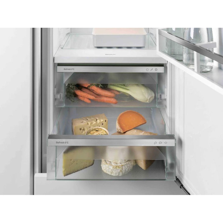 Зона BioFresh з трьома контейнерами створює умови для тривалого збереження овочів, фруктів, м'яса та риби завдяки контрольованій вологості та температурі. У холодильному відділенні сім основних скляних полиць, з яких шість регульовані по висоті, одна складається, а чотири полиці розташовані на дверцятах. Морозильне відділення має вісім відділень з системою VarioSpace для розміщення об'ємних продуктів.