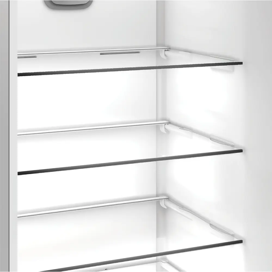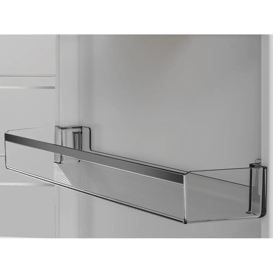 Внутрішній простір організований за допомогою полиць із загартованого скла та балконів на дверцятах, що дозволяє розміщувати великі ємності й пляшки. LED-освітлення полегшує орієнтацію у камері, а металеві профілі додають жорсткості конструкції.