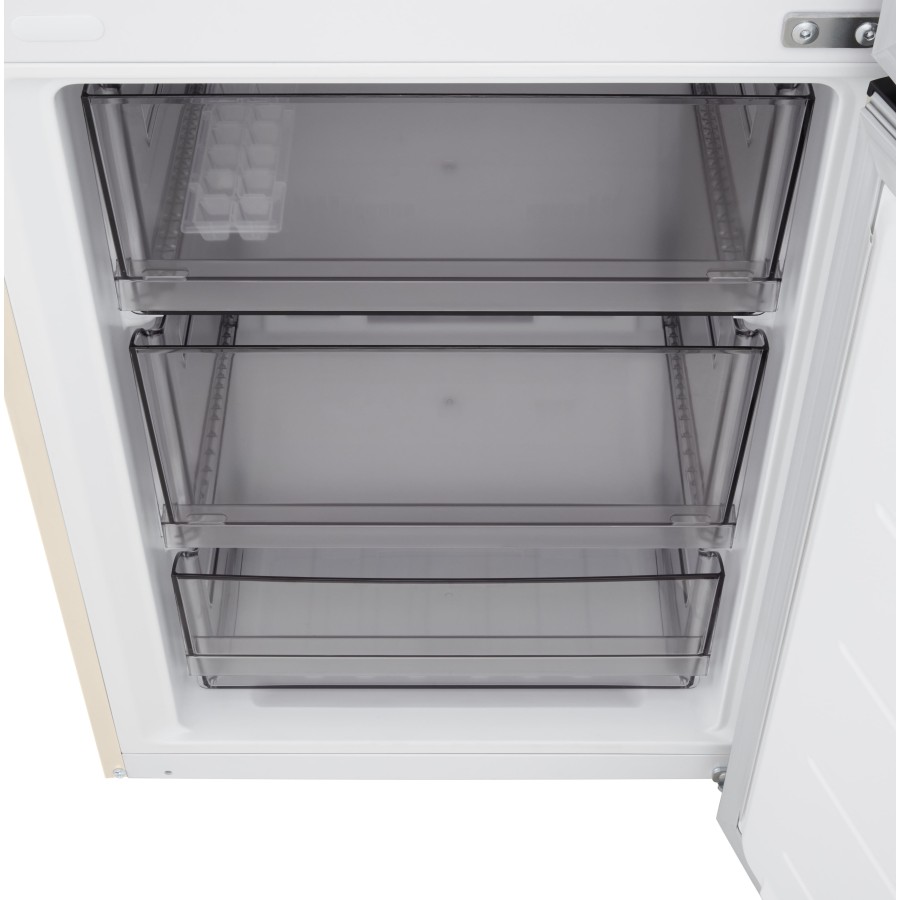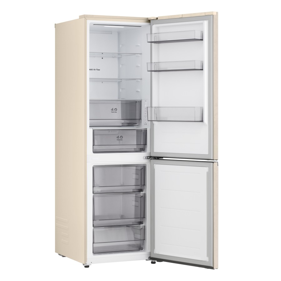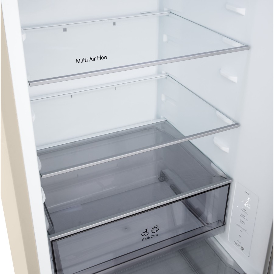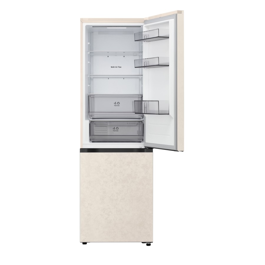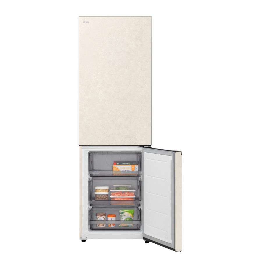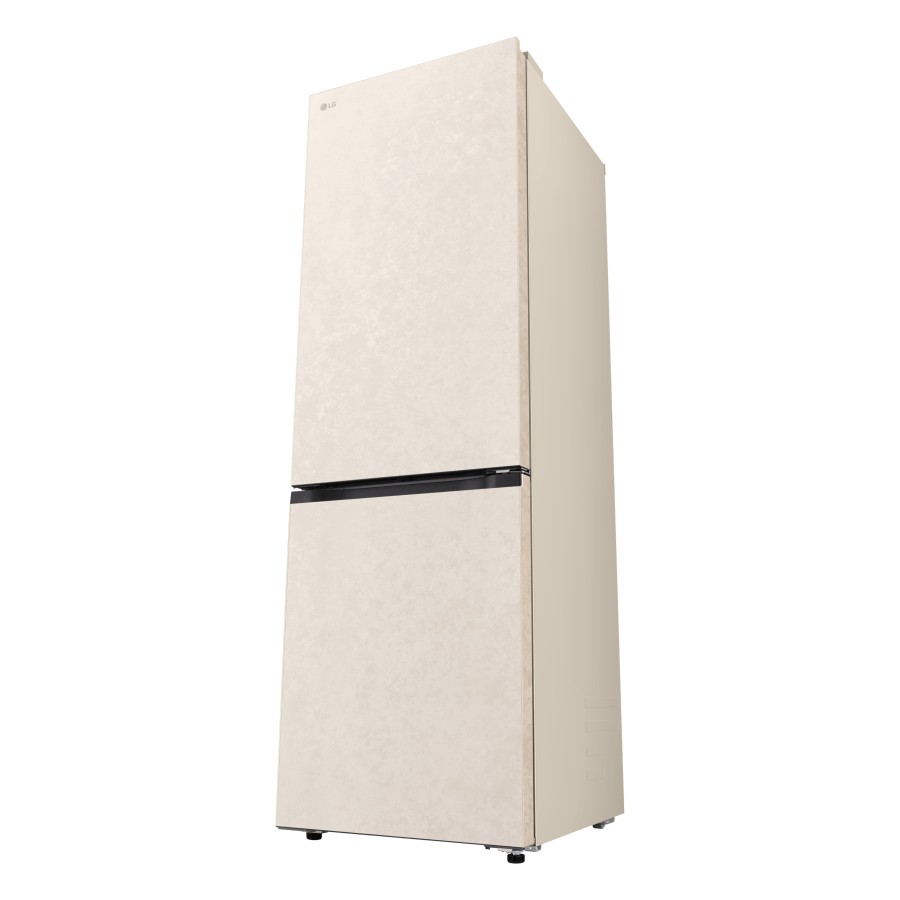 Холодильник LG GC-B459EEYM у бежевому кольорі з прихованими горизонтальними ручками створює стриманий і сучасний вигляд, що пасує до кухонь у нейтральних тонах. Нульовий зазор дозволяє розмістити його впритул до стіни чи шаф, а можливість перевесити дверцята адаптує прилад під будь-яке планування. Внутрішній LED-дисплей розташований зручно для швидкого контролю налаштувань без зайвого освітлення зовнішньої панелі.