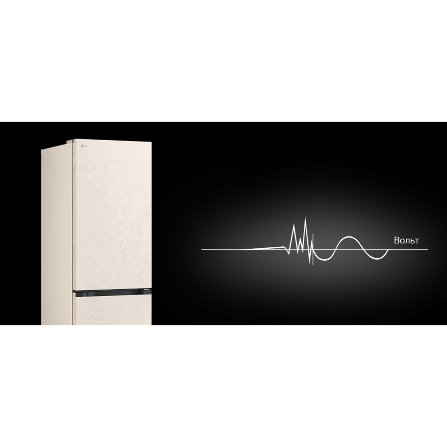 Технологія LG ThinQ з Wi-Fi інтегрує холодильник у розумний дім: через додаток можна регулювати температуру, отримувати сповіщення про відчинені двері чи проводити дистанційну діагностику. Smart Diagnosis аналізує роботу приладу за звуковими сигналами, спрощуючи звернення до сервісу. Захист від перепадів напруги від 174 до 400 В робить його стійким до типових умов електромережі.