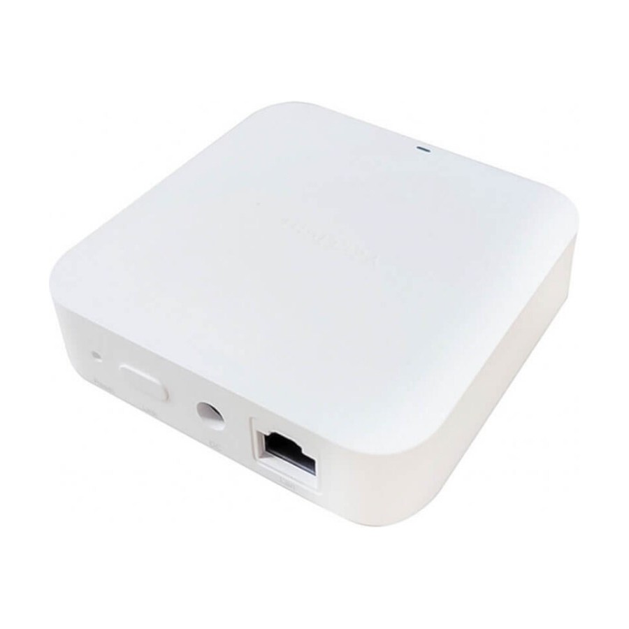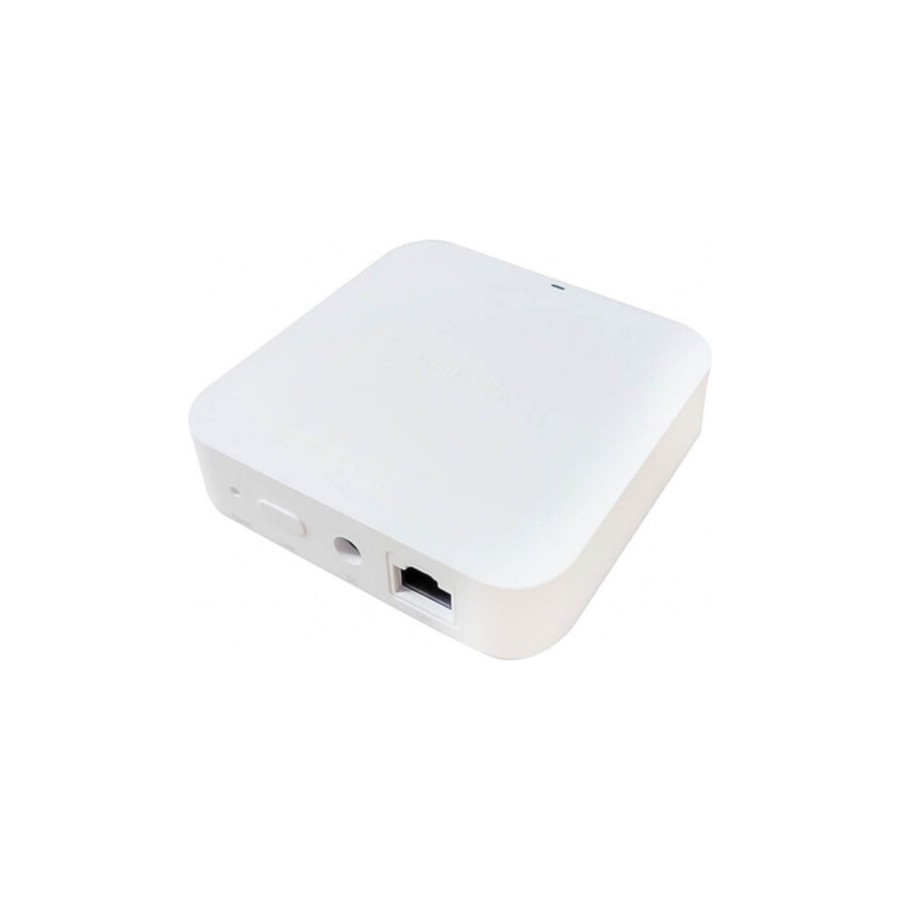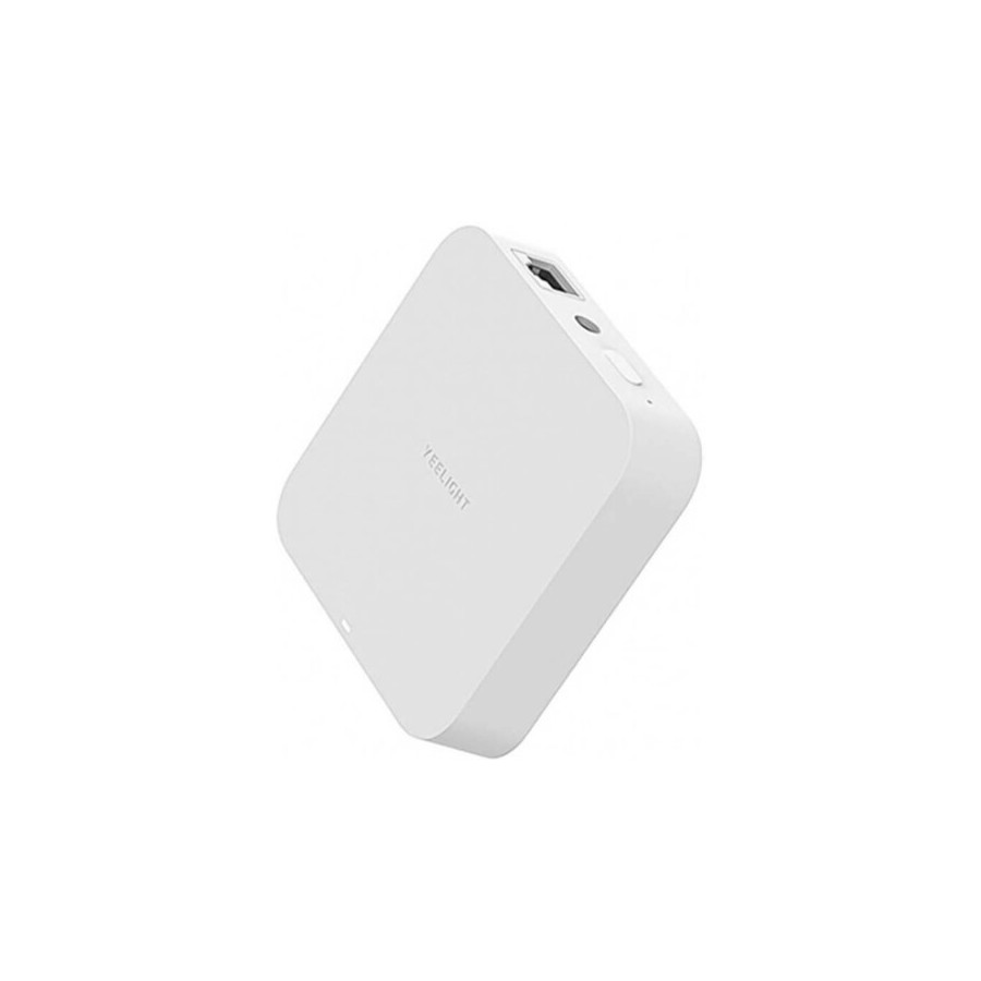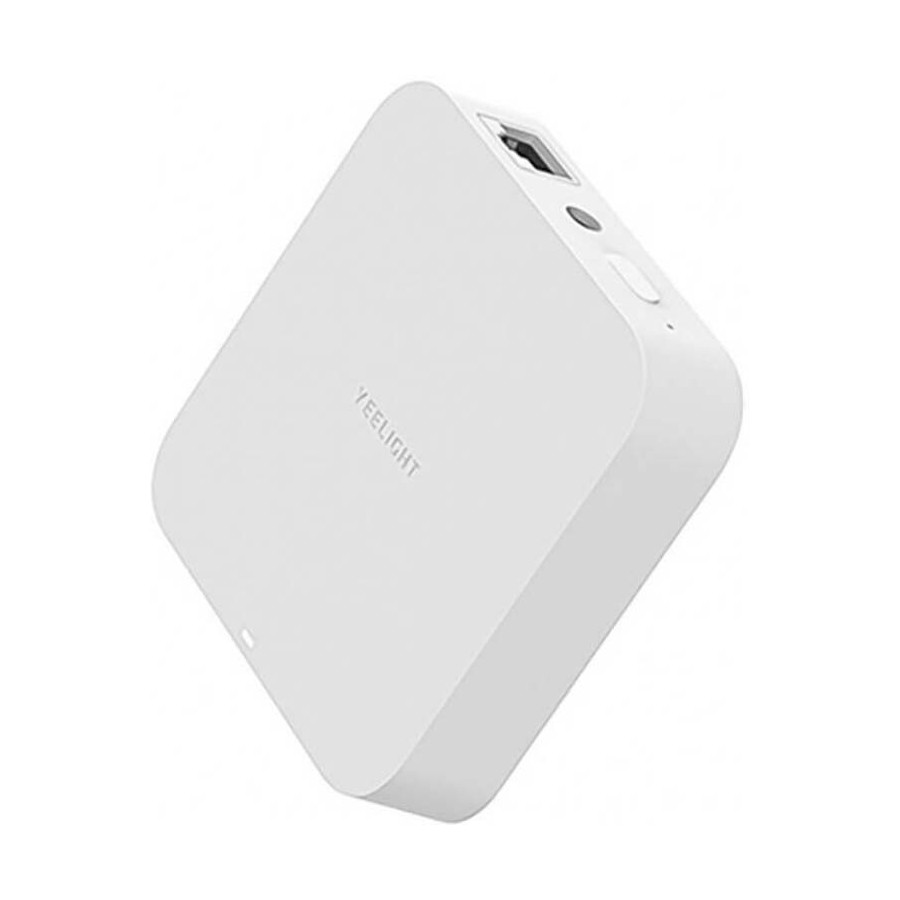 Шлюз Yeelight невеликого розміру, працює від стандартної електричної мережі. Після підключення до мережі, його потрібно синхронізувати з додатком в смартфоні. Через додаток ви можете з'єднати в одну мережу освітлення у вашому будинку-з'єднати датчики освітлення і вимикачі з розумними лампами Yelligth і налаштувати індивідуальні сценарії включення-виключення світла у всьому будинку. Шлюз має порт підключення до мережі Ethernet і WIFI.