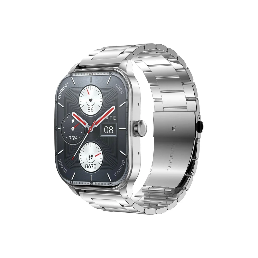 Оцініть переваги одного з найбільших екранів серед розумних годинників. 1.96-дюймовий HD AMOLED – дисплей із щільністю пікселів 330 ppi виводить чітке зображення, яке легко сприймається навіть у сонячну погоду. Покритий дисплей загартованим 2.5D склом, що відмінно витримує зовнішні впливи. Браслет і корпус годинника виготовлені зі сталі, тому годинник має вигляд дорогого аксесуара і відрізняється підвищеною зносостійкістю.