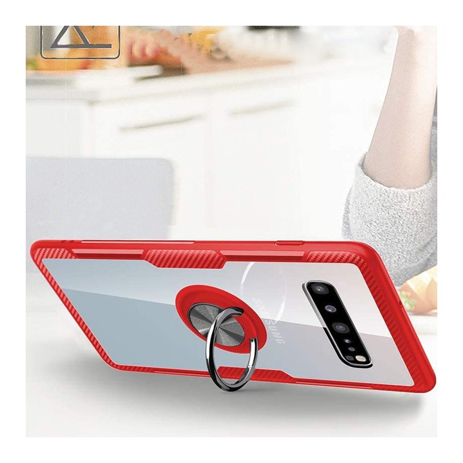 TPU+PC чехол Deen CrystalRing for Magnet (opp) для Samsung Galaxy S10 (Бесцветный / Красный)