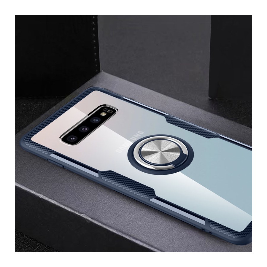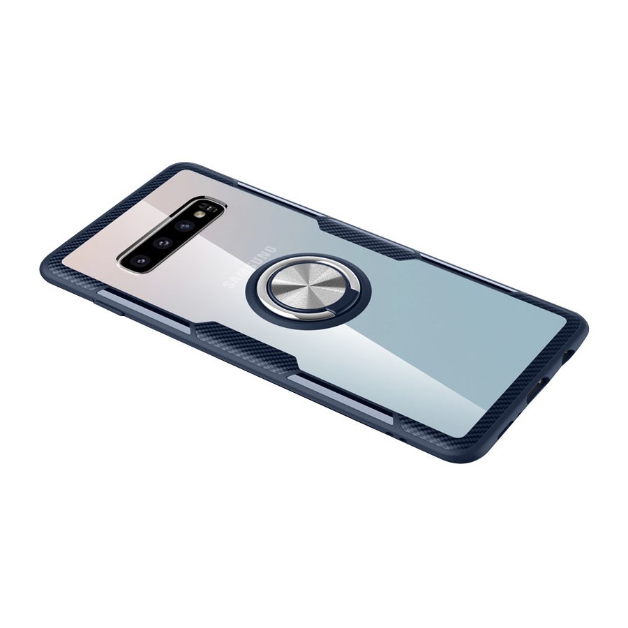 TPU+PC чехол Deen CrystalRing for Magnet (opp) для Samsung Galaxy S10 (Бесцветный / Темно-синий)
