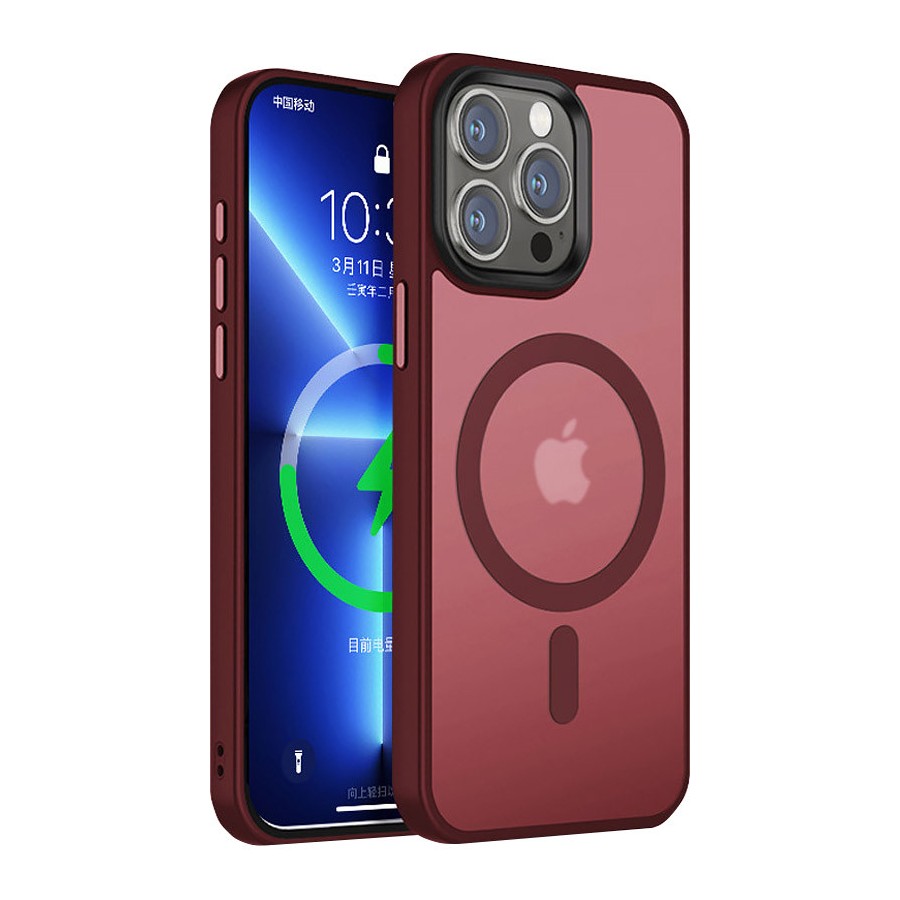 TPU+PC чохол Metal Buttons with MagSafe Colorful для Apple iPhone 15 Pro (6.1") Бордовий
