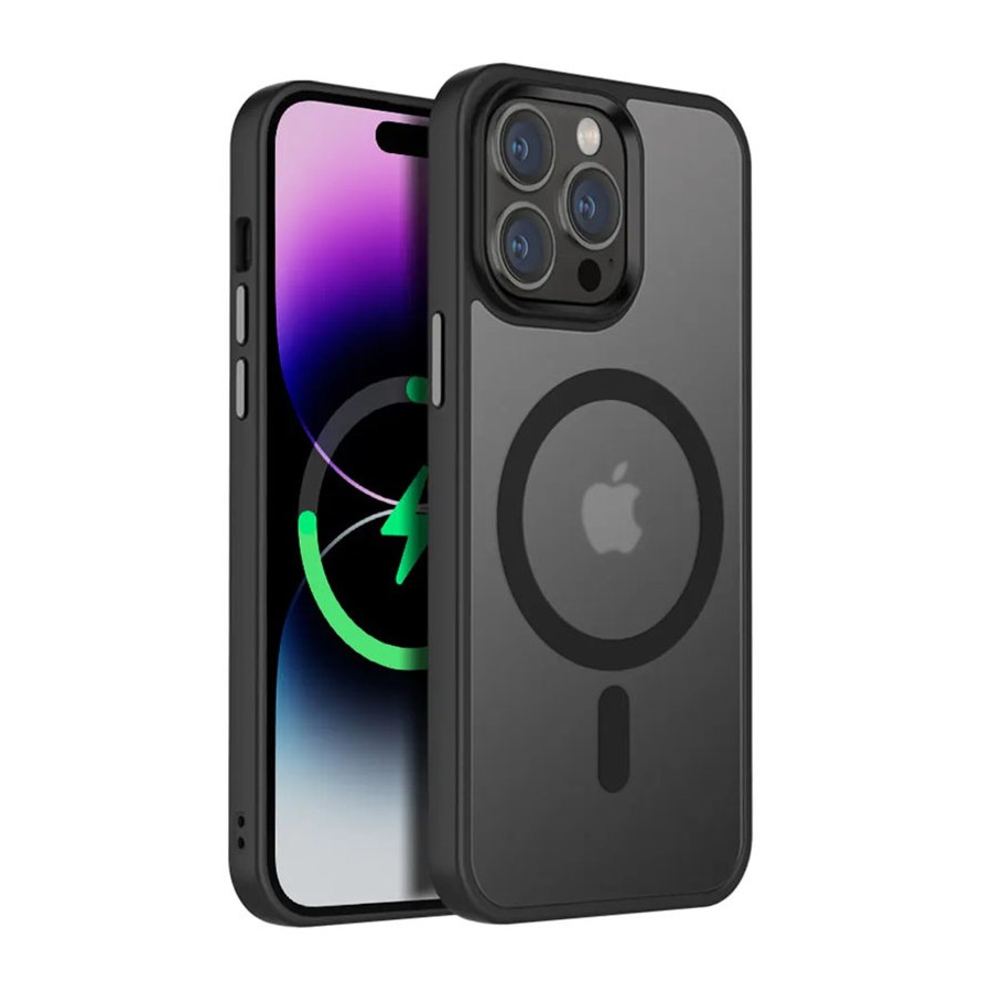 TPU+PC чохол Metal Buttons with MagSafe Colorful для Apple iPhone 15 Pro Max (6.7") Чорний