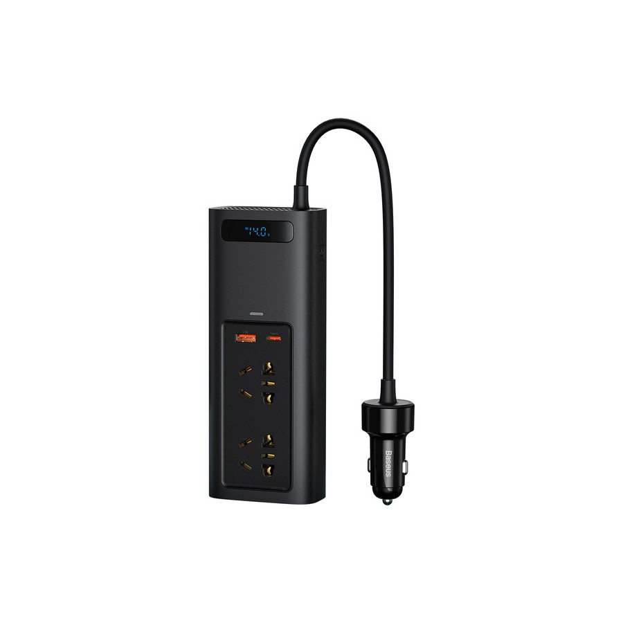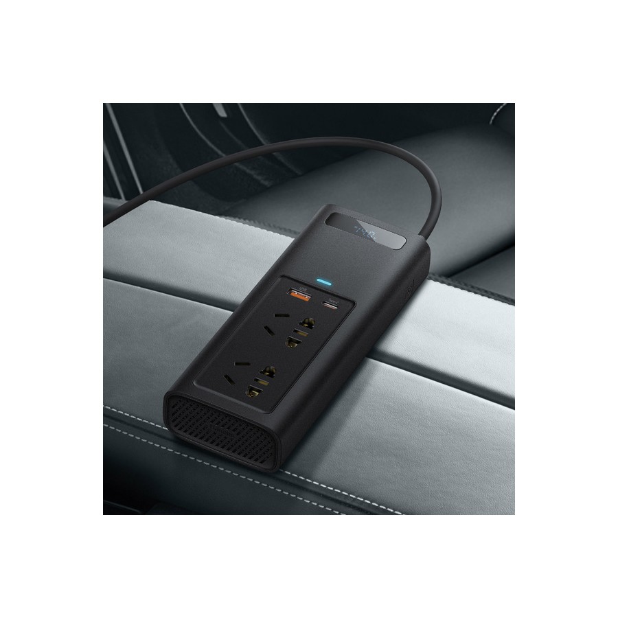 З інвертором Baseus ви зможете працювати за ноутбуком прямо в машині, а також заряджати інші гаджети. На корпусі розташований світлодіодний дисплей, який відображає поточну напругу, щоб контролювати ситуацію.