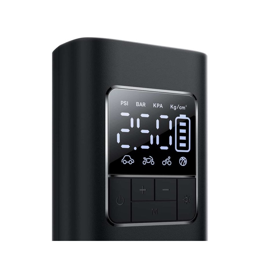 Baseus SuperMini Pro оснащений потужним мотором, який дає можливість досить швидко накачати як м'яч, так і колесо автомобіля. Також у насос вбудований Led-дисплей, який дає змогу відстежувати повітряний тиск і заряд батареї.