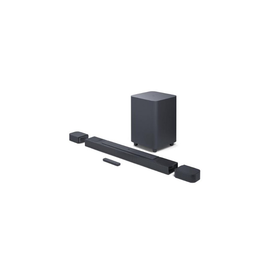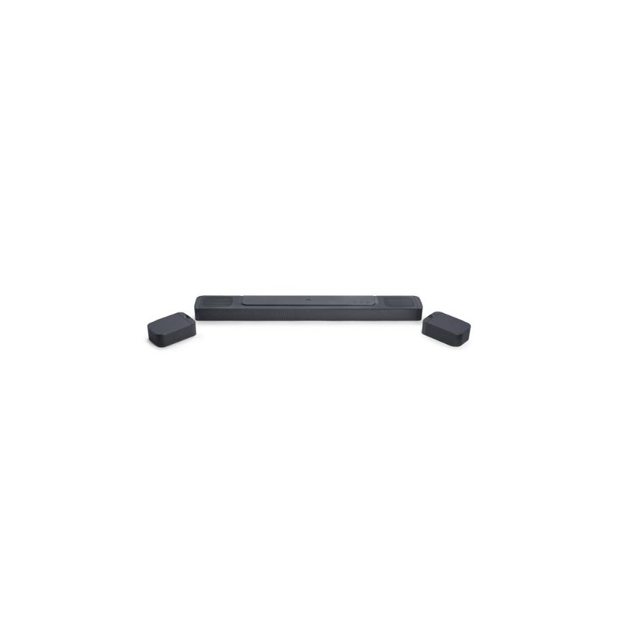 JBL Bar 800 з Dolby Atmos включає два спрямовані вгору динаміки, 10-дюймовий сабвуфер і знімні колонки для створення захопливого 3D-кінотеатру з ефектом занурення.