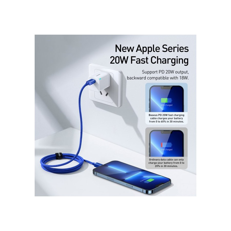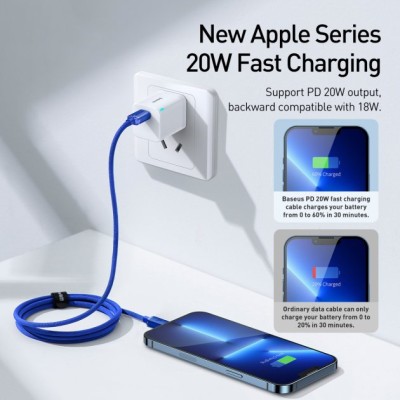 Цей кабель підтримує технологію Power Delivery з потужністю 20 Вт, що дозволяє заряджати ваш iPhone чи iPad надзвичайно швидко. Він здатен зарядити до 60% батареї всього за 30 хвилин.