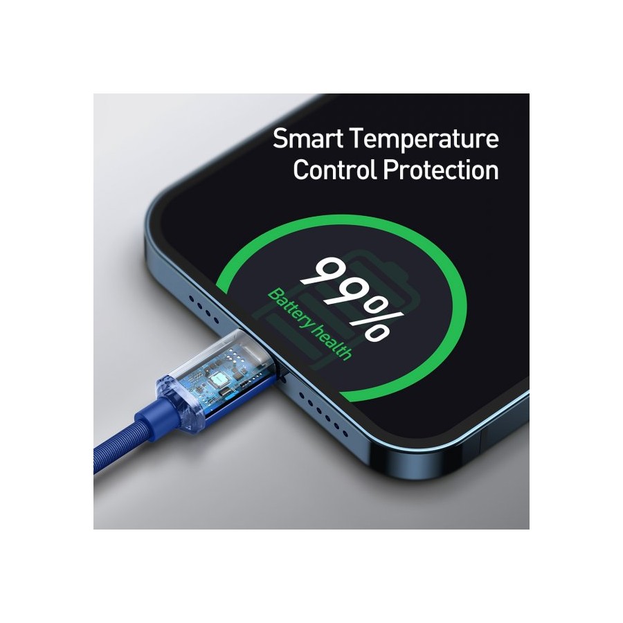 Завдяки використанню алюмінієвого сплаву та тканинного обплетення, кабель має високу стійкість до корозії та механічних пошкоджень. Він здатен витримати до 10 000 згинань, що робить його надзвичайно надійним. Вбудована інтелектуальна система розпізнає рівень заряду та регулює потужність, щоб забезпечити максимальну безпеку для ваших гаджетів, захищаючи їх від перегріву, стрибків напруги та надмірної зарядки. Ви можете бути впевнені в надійності та якості цього кабелю, завдяки якому ваші пристрої завжди будуть готові до роботи.