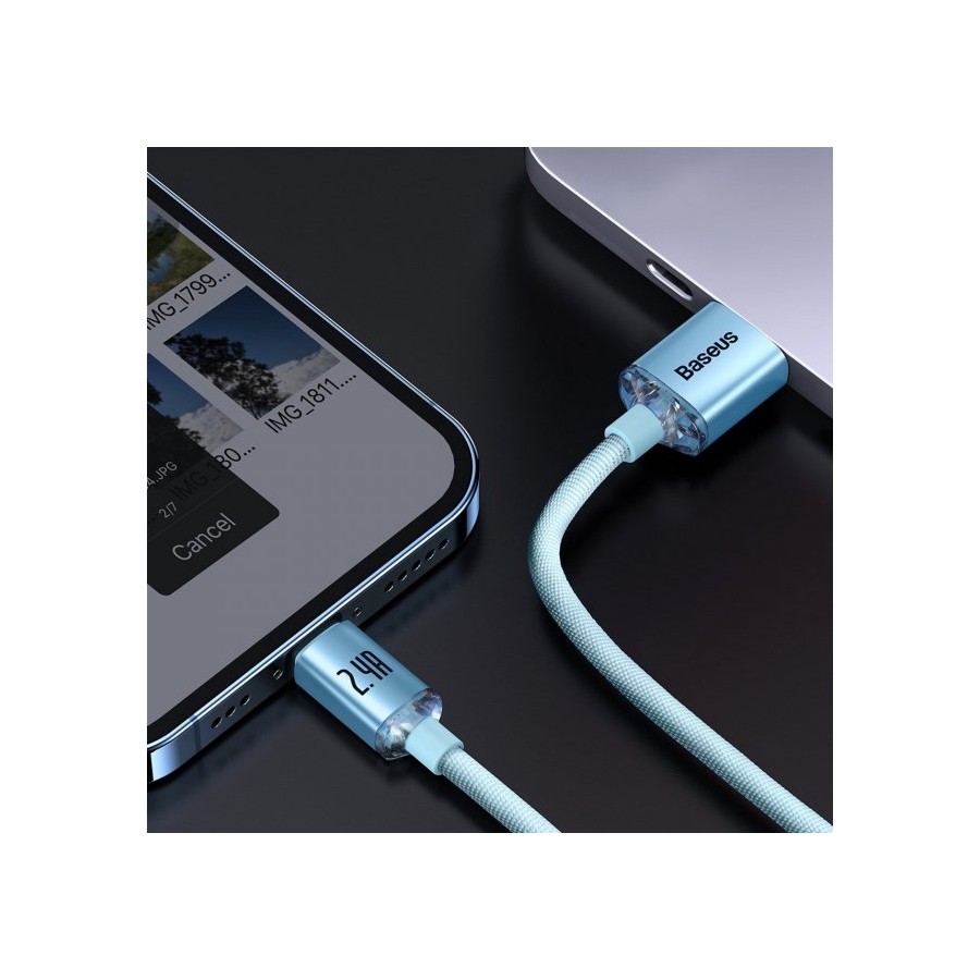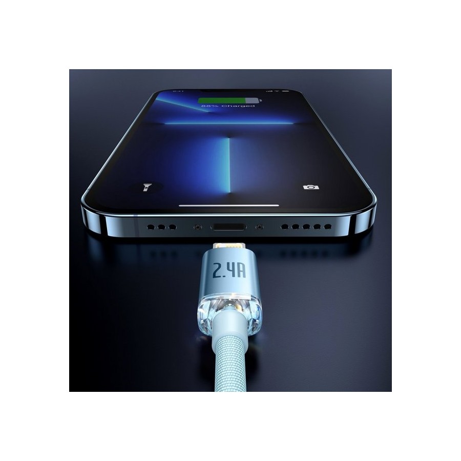 Кабель Baseus Crystal Shine Series Fast Charging Data USB кабель USB To IP 2.4A 2m (CAJY001203) Sky Blue
