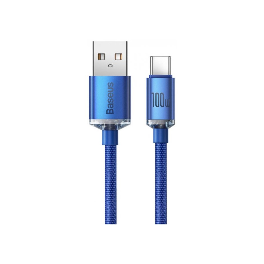 Кабель Baseus Crystal Shine Series USB For Type-C 100W 5A 2m - призначений для передачі даних, а також для дротової зарядки телефонів та планшетів із зарядним роз'ємом Type-C, а також сучасних ноутбуків MacBook, Xiaomi, Lenovo, HP, Asus та ін. Кабель має оптимальну довжину в 2 метри, а обплетення виконано з міцного нейлону. Кабель пропускає струм аж до 5 А, якого достатньо для якісної та швидкої зарядки. Підстава біля роз'єму виготовлено з термополірувану. тому внутрішні проводки в кабелі не зашкодять будь-яких згинання.