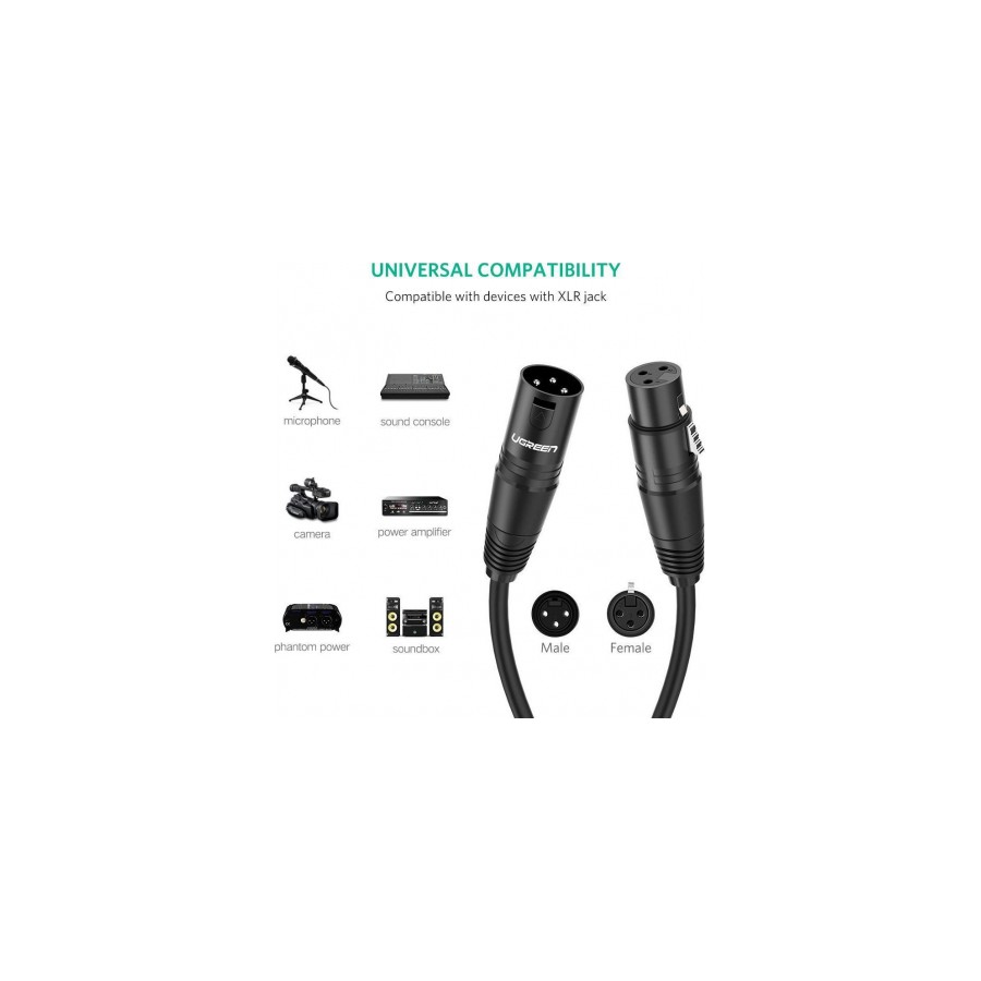 Кабель UGREEN XLR — розумний вибір для підключення мікрофонів до різних програм. Наприклад, у професійних студіях звукозапису, живих виступах, школах, церквах, публічних виступах, вечірках та інших професійних аудіосистемах. З цим кабелем XLR ви напевно відчуєте кращий звуковий ефект незалежно від того, співаєте, записуєте або говорите.