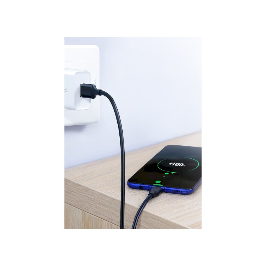 Гнучкий 1,5-метровий кабель дає можливість відійти від ноутбука або розетки на комфортну відстань із девайсом у руках. Провід успішно пройшов випробування на згинання понад 12000 разів без появи переломів. Посилене з'єднання між кабелем і коннектором забезпечує довговічність використання шнура без втрати контакту. Корозійностійка луджена жила з мідного дроту із заземленням і екраном з алюмінієвої фольги є одним із найкращих провідників струму для максимально швидкого й безпечного заряджання.