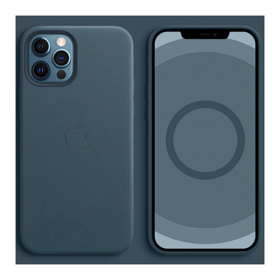 Кожаный чехол Leather Case (AA Plus) with MagSafe для Apple iPhone 12 Pro / 12 (6.1") (Indigo Blue)