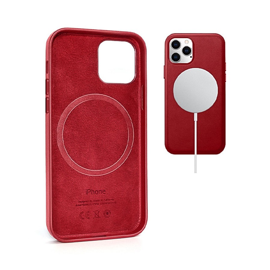 Кожаный чехол Leather Case (AAA) with MagSafe and Animation для Apple iPhone 12 Pro / 12 (6.1") (Red)