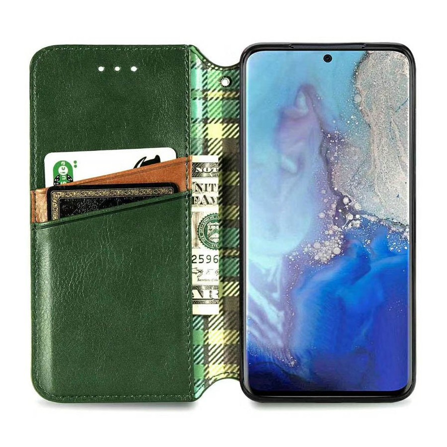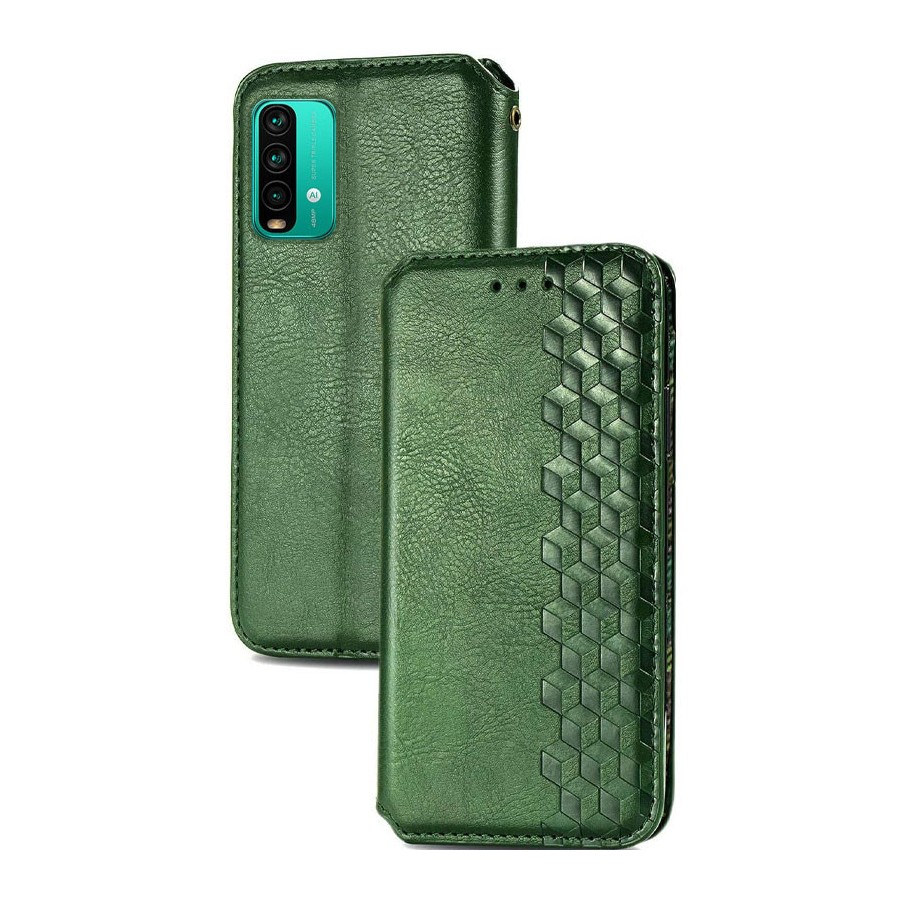 Кожаный чехол книжка GETMAN Cubic (PU) для Xiaomi Redmi Note 9 4G / 9 Power / Redmi 9T (Зеленый)