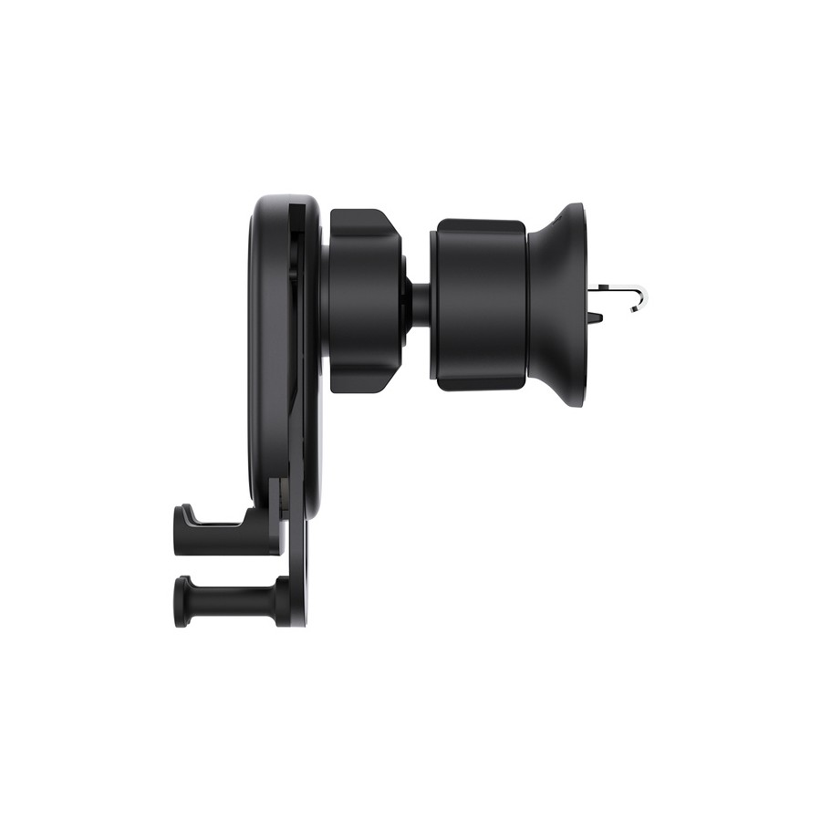 Механічний затискач підходить для всіх смартфонів розміром 4,7-6,7 дюйма і оснащений кнопкою розблокування, тому пристрій легко встановити і зняти однією рукою. Шарнірне кріплення тримача обертається на 360°. Фіксатори не порушують доступ до роз’єму, щоб смартфон можна було заряджати під час поїздки. Тримач не блокує огляд і не відволікає водія від дороги, зберігаючи швидкий доступ до смартфона для роботи з навігатором або дзвінків з гучним зв'язком.