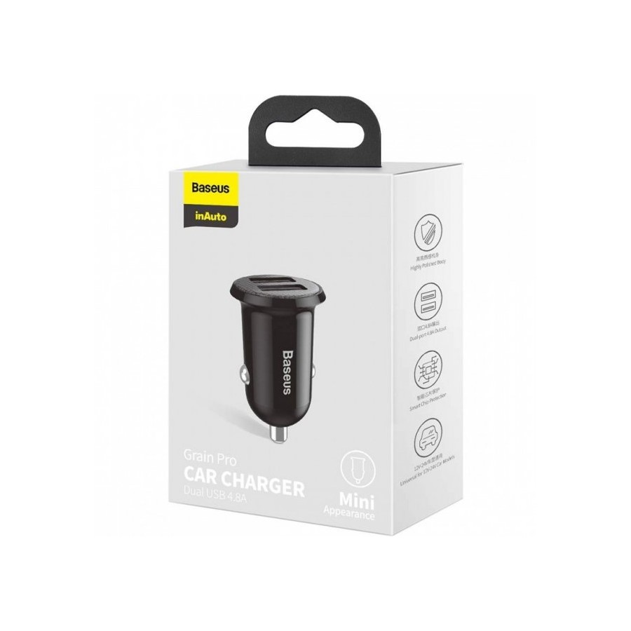Автомобільний ЗП Baseus Grain Pro 4.8A 2USB. Baseus Grain Pro 4.8A 2USB — автомобільний зарядний пристрій із 2 USB-портами.