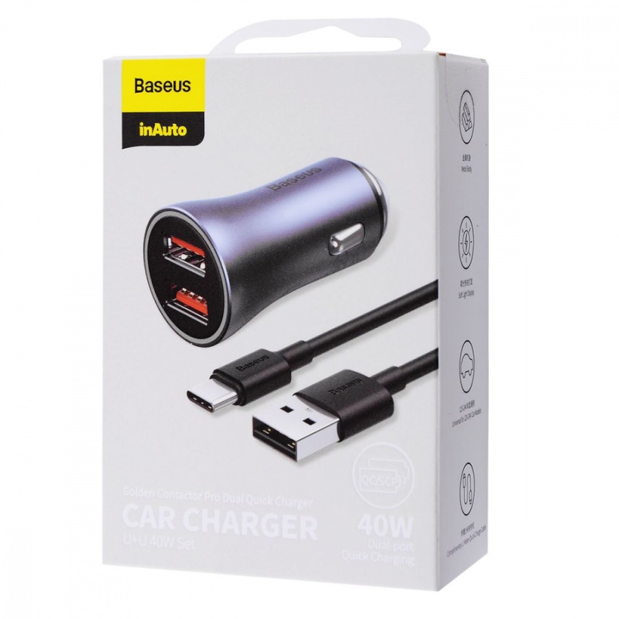 Baseus Golden Contactor Pro 40W 2USB - автомобільний зарядний пристрій з 2 USB портами.