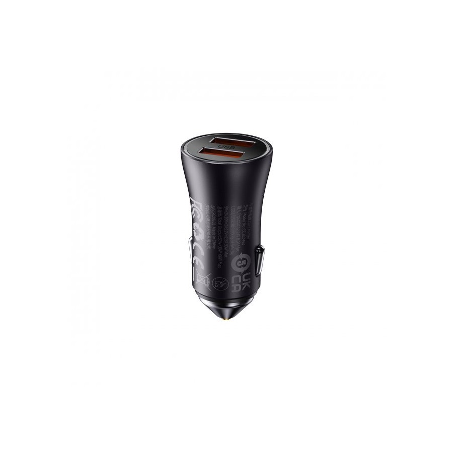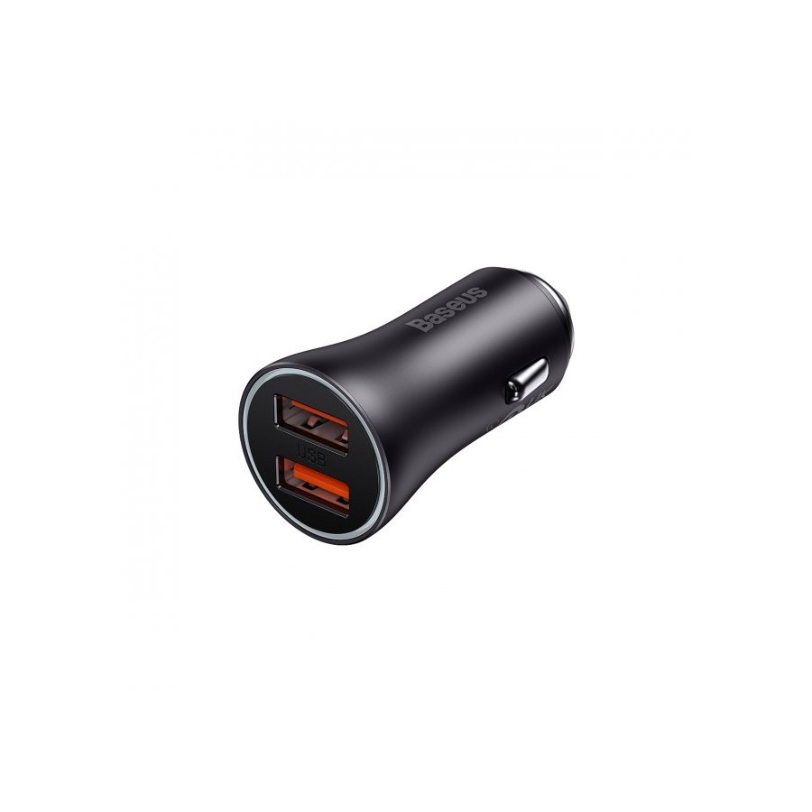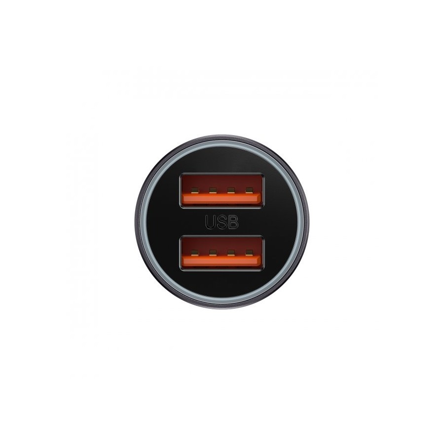 Baseus Golden Contactor Pro Dual Fast Charger Car Charger C+C 40W Dark Gray ─ це автомобільний пристрій для зарядки гаджетів з технологією Quick Charge. Пристрій має 2 USB-входи Type-C. З його допомогою можна швидко заряджати різні девайси в автомобілі. Аксесуар має стильний дизайн, зовнішній корпус виготовлений із металу, який стійкий до високих температур та зовнішніх пошкоджень. Також має кругову підсвітку, яка світиться під час підключення та допомагає підключатись до пристрою в темряві. Для безпеки гаджетів в пристрій вбудований інтелектуальний захист від короткого замикання, перепадів напруги, перегріву, перевантаження та перезарядки.