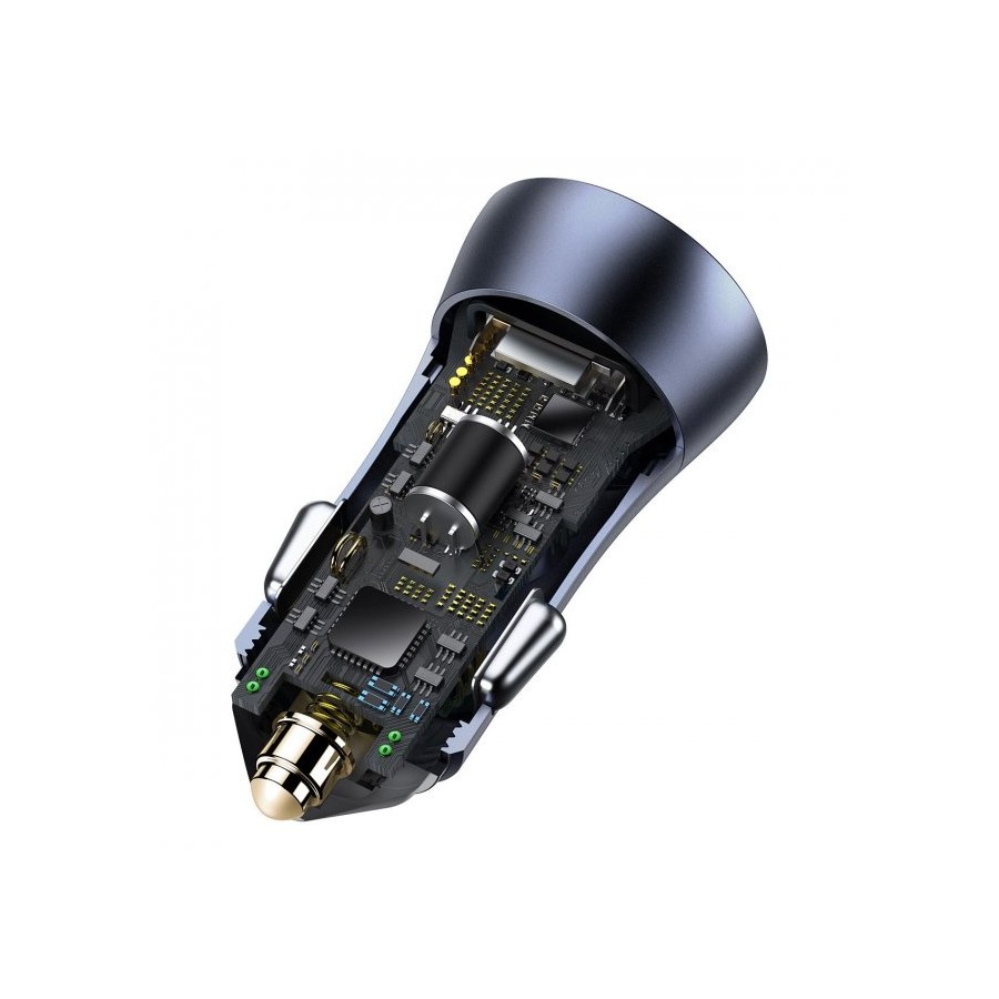 Зарядний пристрій від прикурювача Baseus Golden Contactor Pro Dual Quick Charger Car Charger 40W USB+Type-C не тільки дуже функціональний, але і виглядає приголомшливо. Він виготовлений з міцного матеріалу, стійкого до високих температур і зовнішніх пошкоджень. Компактний розмір дає змогу легко розмістити його в прикурювачі автомобіля. Матеріали і технології захисту, що використовуються в зарядці, виключають ймовірність короткого замикання, перегріву, перезарядки та інших небажаних чинників.