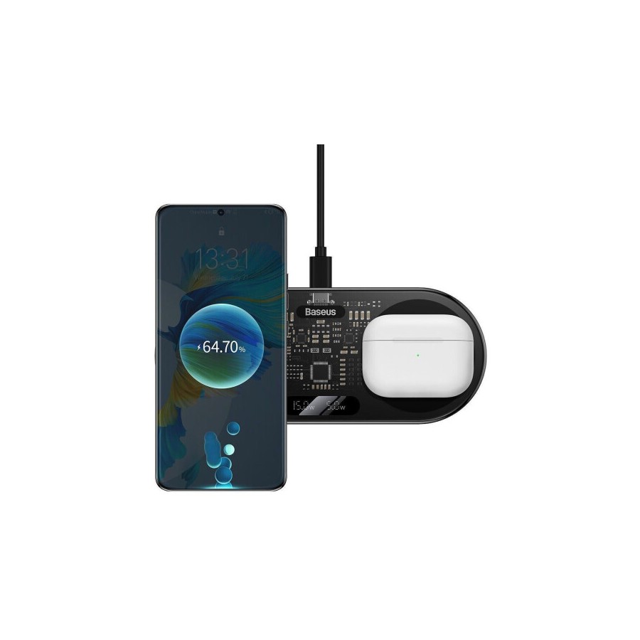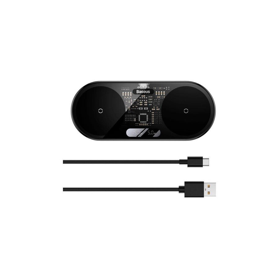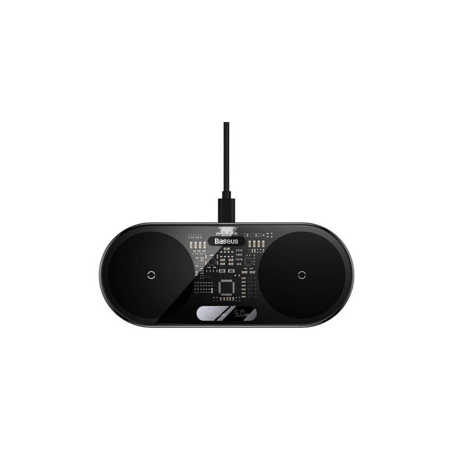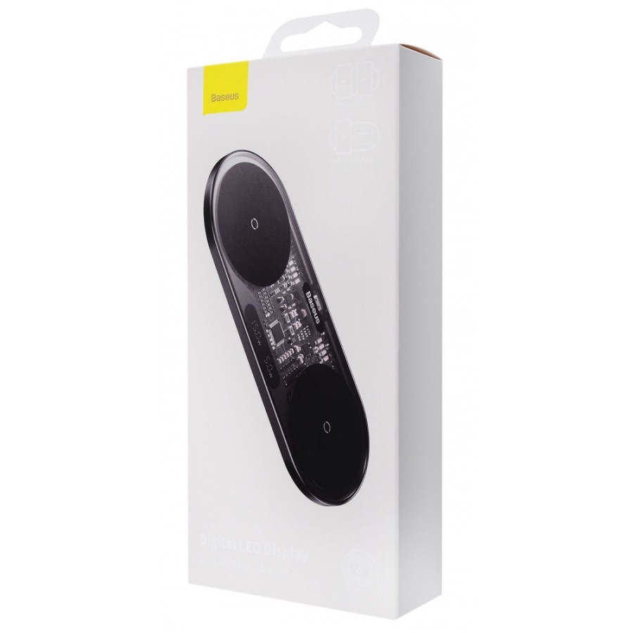 Бездротовий зарядний пристрій Baseus Digital призначений для одночасного заряджання двох пристроїв. Завдяки йому можна забути про незручні кабелі. Підтримує заряджання сумарною потужністю 20 Вт.