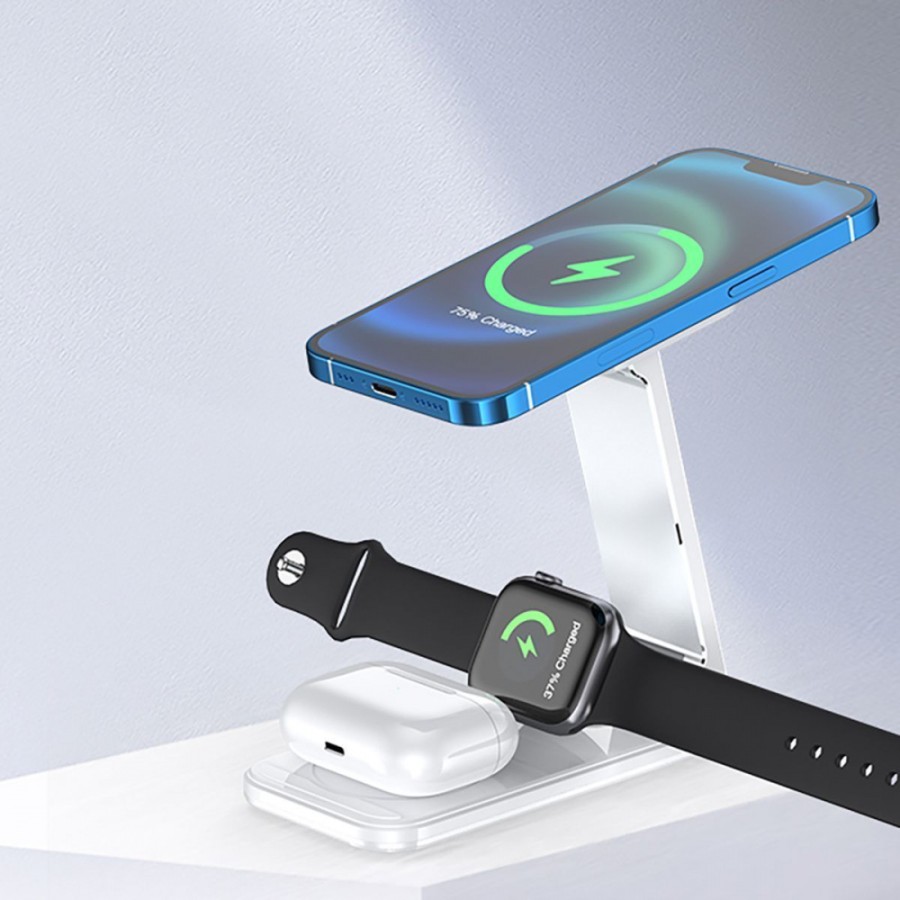 Magnetic Energy Fold допоможе зарядити одразу три різні пристрої без втрати потужності. Гаджет має 3 різні точки контакту: для годинника, навушників та смартфону, що компактно розміщенні та не заважають один одному.