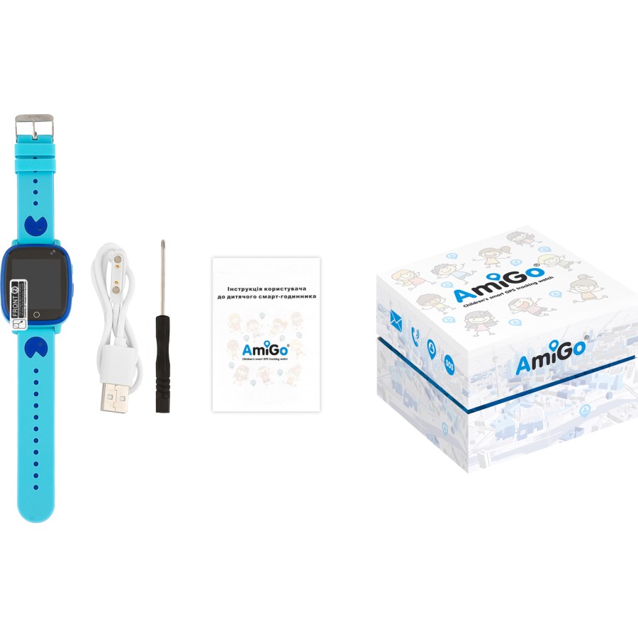 Вбудована камера дозволить швидко зробити селфі, а власна пам'ять об'ємом 32 Мб відповідає за збереження особистих даних. Невеликий світлодіодний ліхтарик підсвітить шлях в темряві. Особлива кнопка SOS дозволить дитині подати сигнал тривоги безпосередньо з годинника, а функція швидкого набору – натисканням пари кнопок дзвонити на номери, занесені в пам'ять гаджета. Дизайн AmiGo GO004 Splashproof Camera + LED легко змінити за рахунок знімних різнокольорових ремінців, а надійна застібка з пряжкою гарантує безпечну фіксацію браслета на руці.