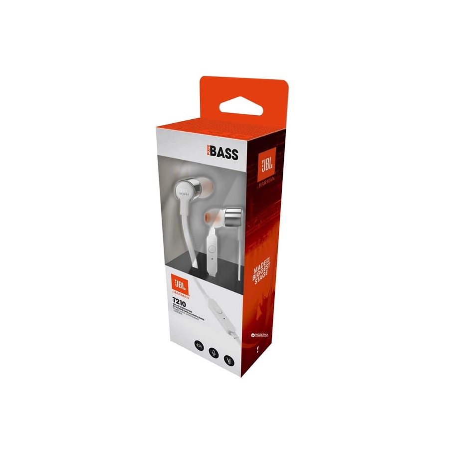 Вони легкі, зручні та компактні. Усередині корпусу вушних вкладок із металевим обробленням розташована пара 8.7-мм динаміків, що можуть видавати досить потужні баси та відтворювати потужний звук JBL Pure Bass, який можна почути в концертних залах, на спортивних аренах та у звукозаписних студіях у всьому світі. Крім того, однокнопковий пульт дає змогу керувати відтворенням музики, а також відповідати на дзвінки через вбудований мікрофон. Все це робить модель T210 зручним партнером для повсякденного використання на роботі, вдома та в дорозі.
