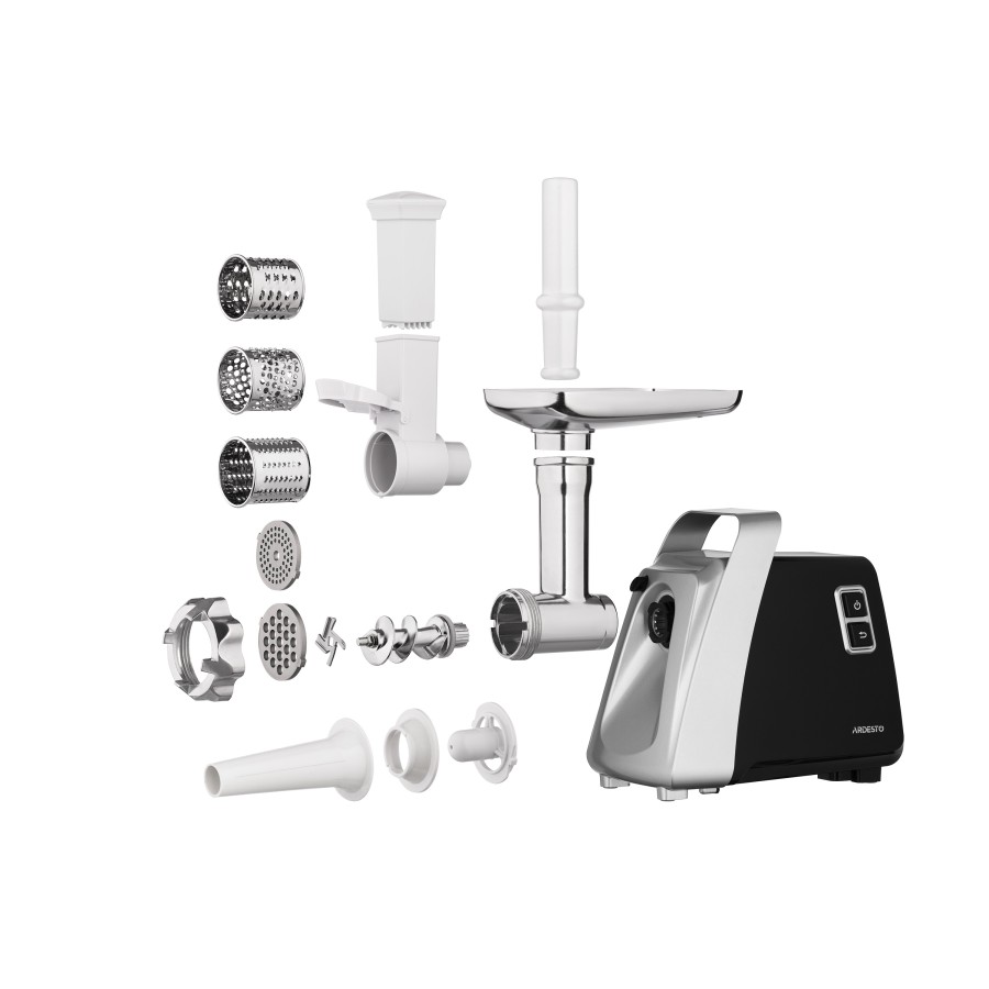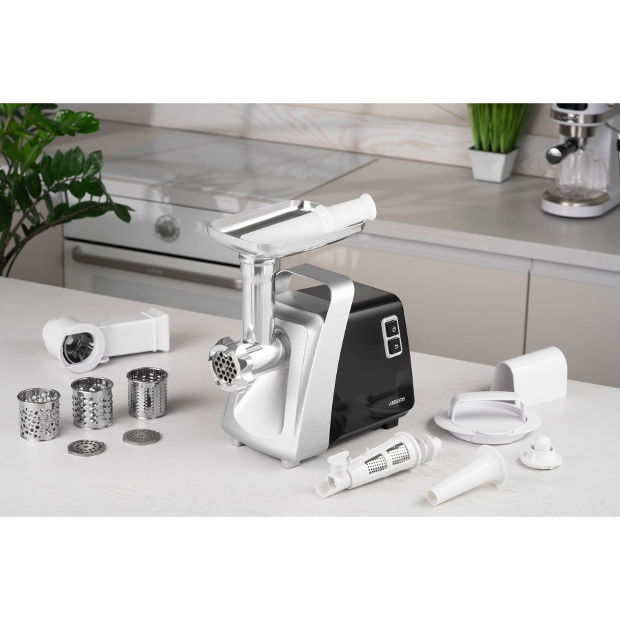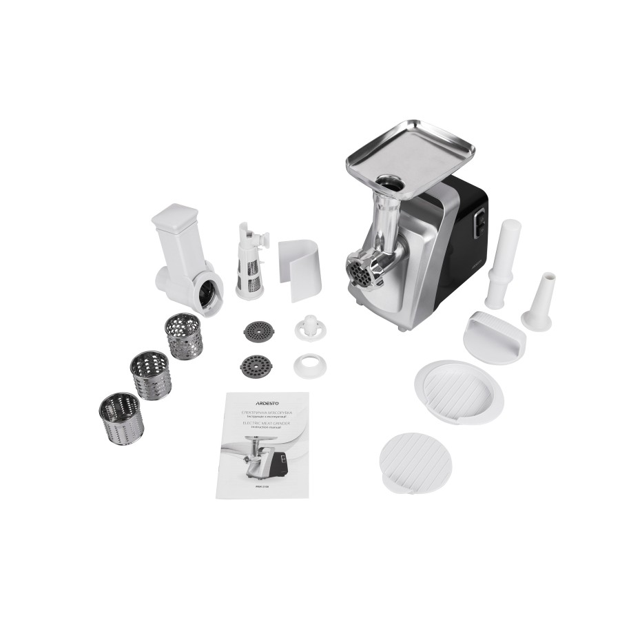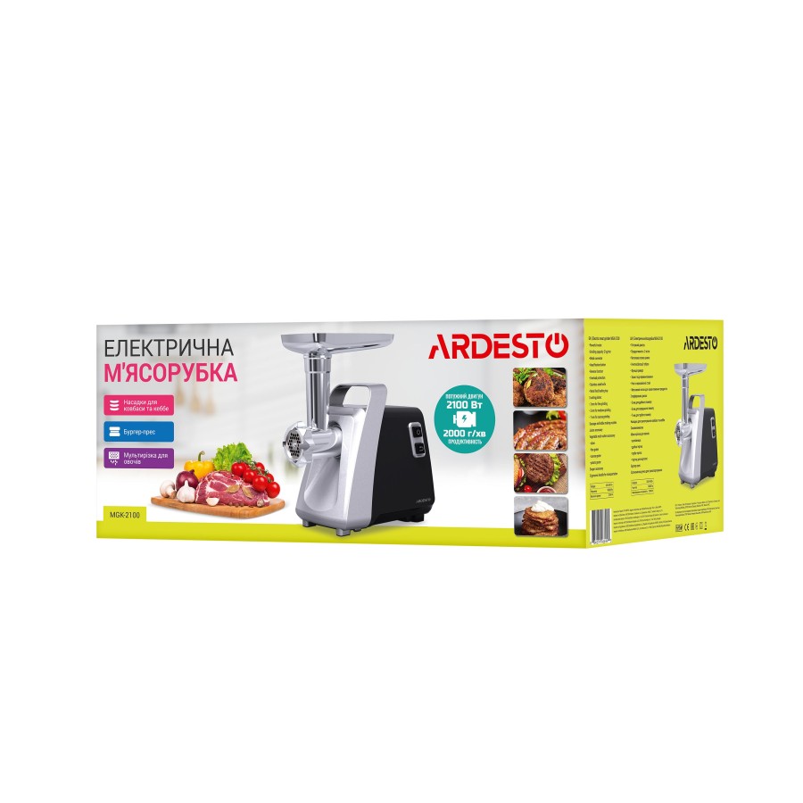 Мясорубка Ardesto, 2100Вт, 2кг/мин, 3 решетки, насадка для колбас, кеббе, томатов, 3 терки, бургер-пресс, пластик, черно-серебристый (MGK-2100)