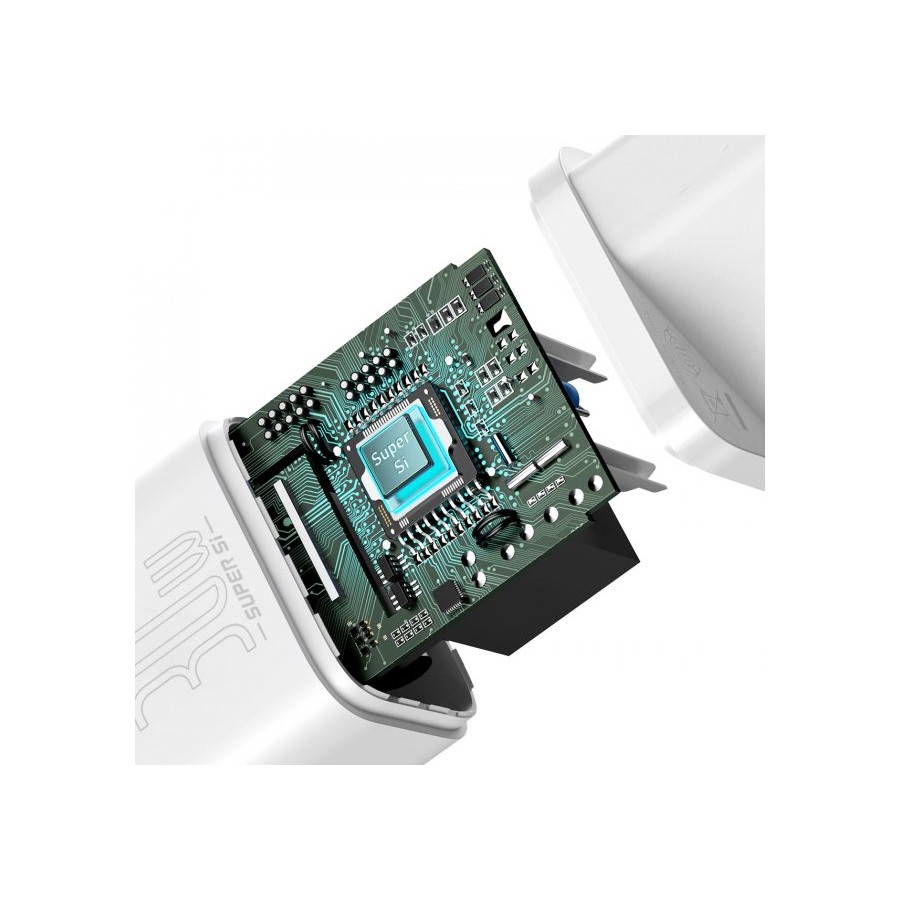 Зарядний пристрій Baseus USB-C Wall Charger Super Si 30W - компактний адаптер, оснащений USB-C портом з підтримкою PD 3.0. Швидка зарядка забезпечує до 50 % лише за 30 хвилин без ризику перегріву, короткого замикання або пошкодження акумулятора.