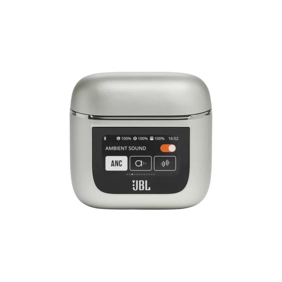 Керуйте налаштуваннями навушників, дзвінками та відтворенням музики, контролюйте налаштування звуку та рівень заряду акумулятора, а також встановлюйте будильник, не виймаючи телефон, через екран зарядного кейса. Насолоджуйтесь справді бездоганним досвідом завдяки унікальному розумному зарядному чохлу JBL Tour Pro 2 без використання телефону або додатку JBL Headphones App.