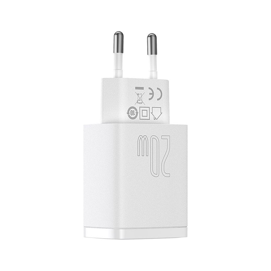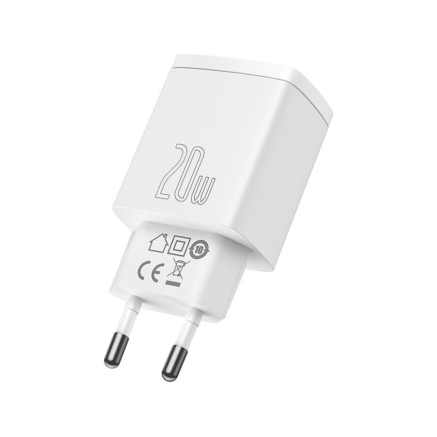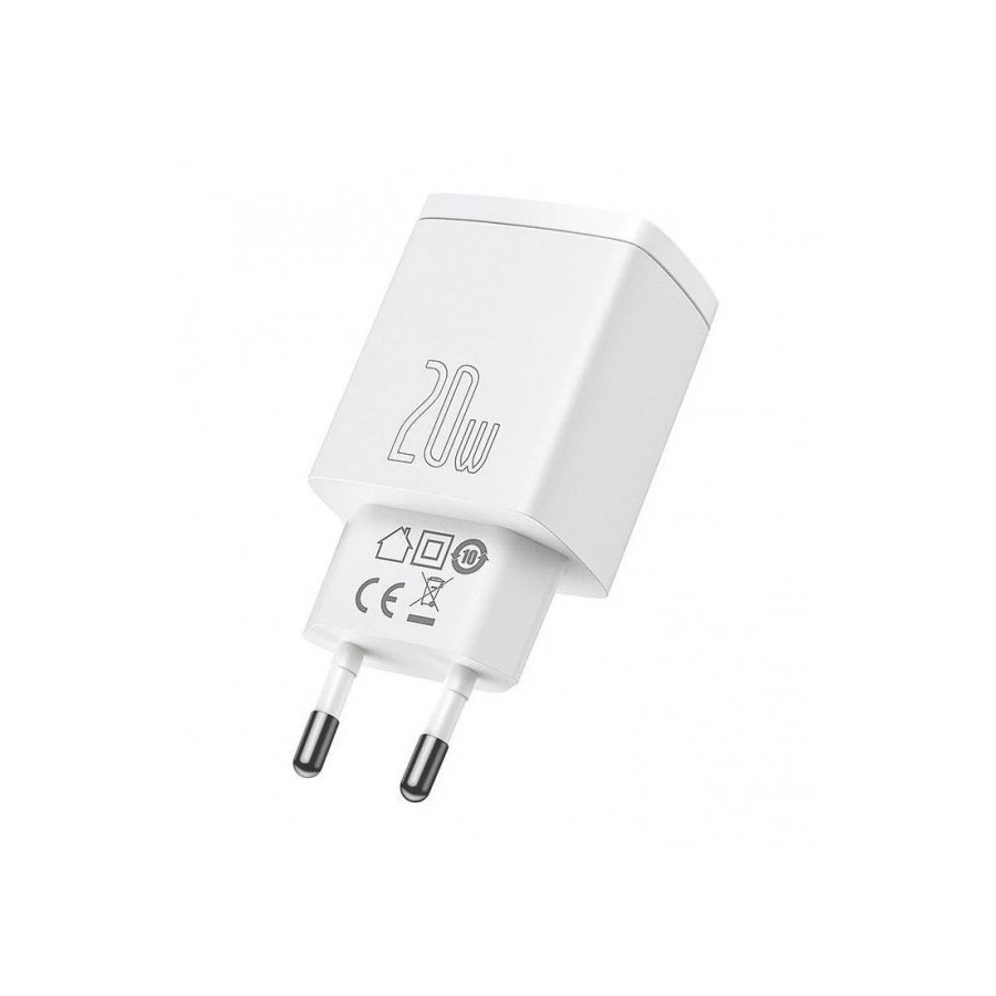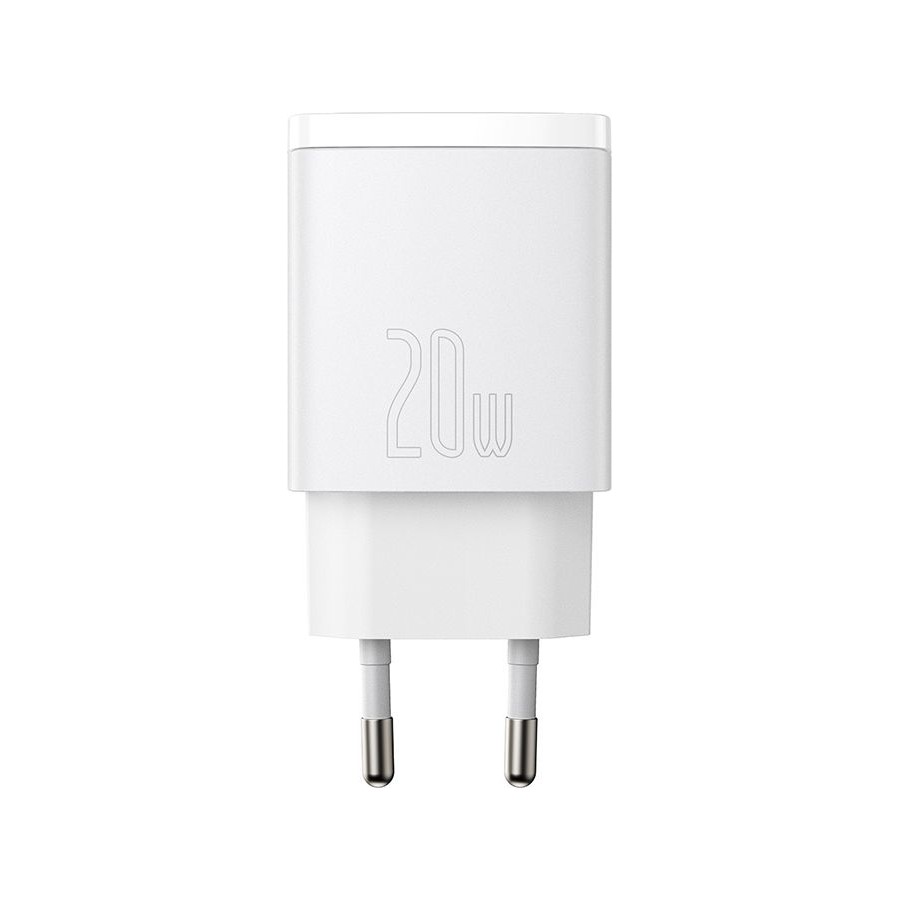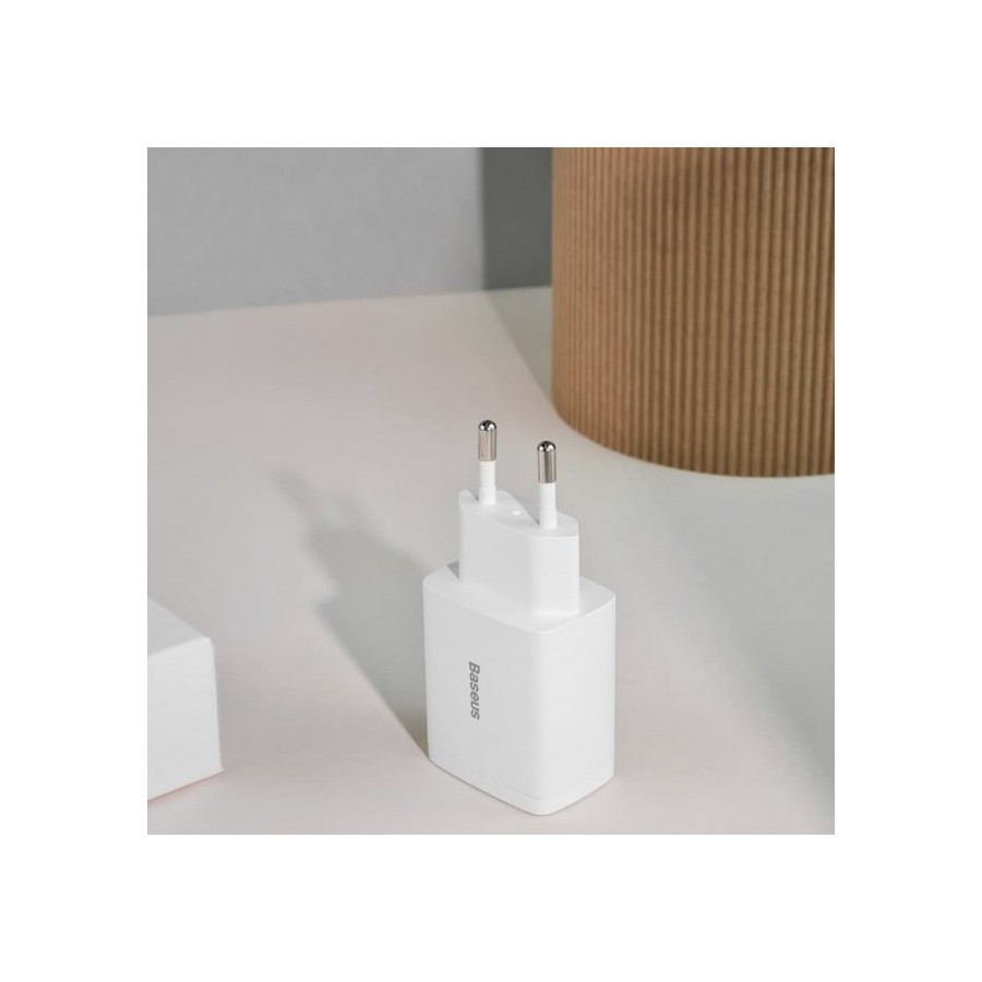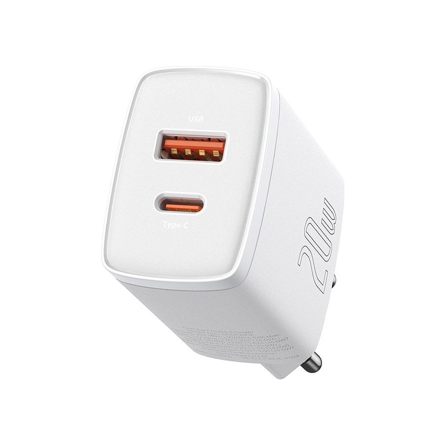 Baseus Wall Charger USB+USB-C 20W - мережний зарядний пристрій, який призначений для зарядки мобільних пристроїв від мережі змінного струму. Поставляється без кабелю. Має гладке покриття корпусу, чим і відрізняється від інших пристроїв. Підтримує швидку зарядку Power Delivery, тому заощадить час на відновлення енергії. Оснащений парою USB портів, тому дозволяє заряджати одразу два гаджети.