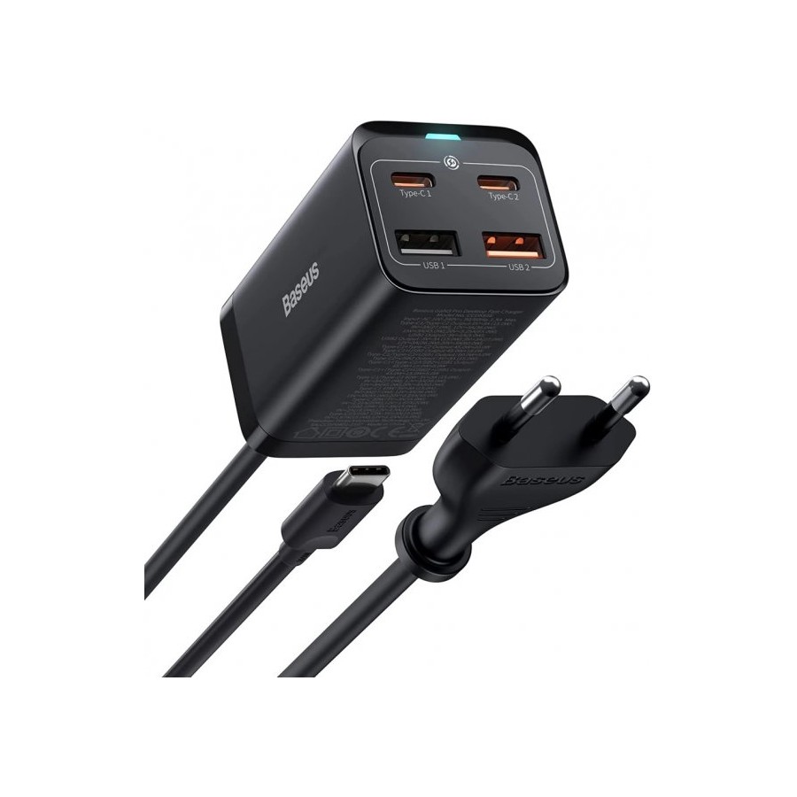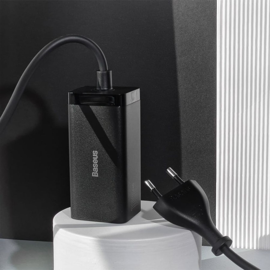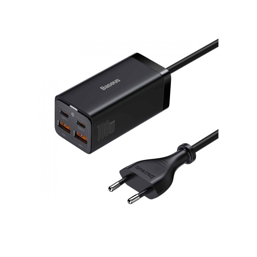 Baseus GaN3 Pro 100W (2 Type-C + 2 USB) — мережевий зарядний пристрій високої потужності, який здатний заряджати 4 гаджети одночасно.