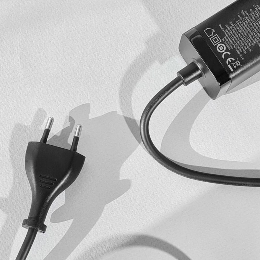 Зарядний пристрій оснащений вбудованим кабелем AC 100–240 В з вилкою. Він сумісний зі стандартами електромереж більшості країн, а довжина 1.5 м у поєднанні з подарунковим кабелем Type-C to Type-C усуває всі складнощі з підключенням на великій відстані від розетки.